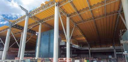 mente pela utilização do aço. A dificuldade de contar com mão de obra especializada no local, por exemplo, foi equacionada pela precisão e facilidade que a construção metálica possibilita. “A obra em aço, além disso, acarreta manutenção menos custosa e mais fácil, o que não se deve desprezar, considerando as características locais”, argumenta Rondinelli. Os projetistas tomaram cuidado para que o desenho arrojado não representasse um rompimento brusco com o conceito inicial de uma galeria de compras, mantendo um visual leve e facilidade de acesso. “A geometria precisava demonstrar ousadia e contemporaneidade, mas sem gerar inibição no consumidor. O shopping center une simplicidade e modernidade – e a ideia é que ele continue moderno por muito tempo”, define Rondinelli.