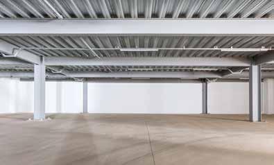 Para obter ganhos na produtividade, as lajes dos pavimentos, inclusive dos sobressolos para os estacionamentos, foram projetadas em steel deck. As vigas de aço e os pilares em aço revestidos em concreto proporcionaram ampla área livre às lajes