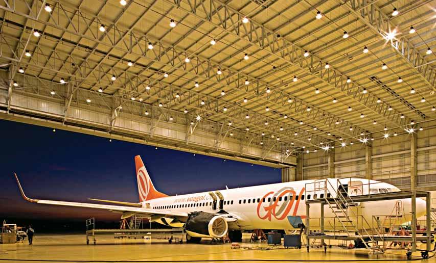 CENTRO DE MANUTENÇÃO DA GOL EM MINAS GERAIS ESTÁ ENTRE OS MAIS AVANÇADOS DO PAÍS. O USO DO AÇO FOI FUNDAMENTAL PARA VENCER AS DIFICULDADES INERENTES A ESTE TIPO DE EMPREENDIMENTO