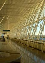 As estruturas em aço foram a solução para preservar a leveza e a transparência do projeto original. Por sua facilidade de se agregar a estruturas existentes, a reforma teve o cronograma acelerado e sem nenhum contratempo. O prédio original concentrou a função de desembarque, enquanto um novo edifício ficou com a função de embarque dos passageiros. Ligando os dois espaços, está uma edificação elíptica com 287,5 m de comprimento, construída em tubos de aço e vidro, onde se concentram as salas de embarque e as pontes metálicas (fingers), que hoje dividem os fluxos de embarque e desembarque. O novo terminal funciona somente para embarque, deixando o anterior com a função de desembarque. (F.L.) M