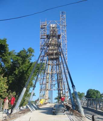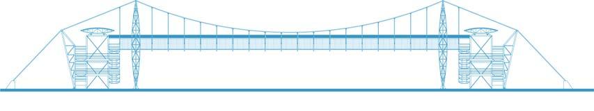 O comportamento tridimensional da estrutura,com alta rigidez à flexão e torção,conseqüentemente eliminou vibrações induzidas por ventos e pedestres,problemas comuns em estruturas pênseis. M