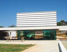 Nesta configuração, o aço foi a melhor solução construtiva graças às suas propriedades estruturais, pré-fabricação, facilidade de transporte e montagem. A estrutura em aço se apoia em apenas oito pilares, com balanços atirantados, reduzindo ao mínimo o impacto sobre o terreno. Esta solução estrutural facilitou, sobremaneira, a montagem, feita com ligações soldadas e aparafusadas.
