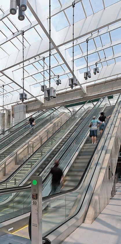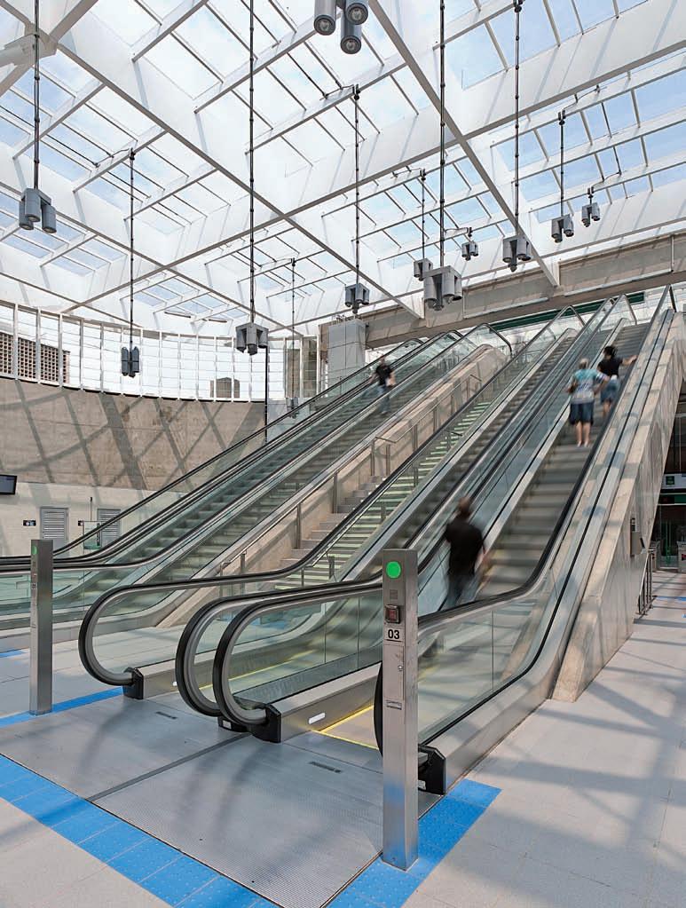 Nas novas estações da Linha 2 – Verde, a identidade visual é garantida por amplas coberturas em aço e vidro. Os elementos não só qualificam os espaços como oferecem eficiência energética. “Buscamos, com essas grandes aberturas, integrar o metrô à superfície e possibilitar a penetração de ar e luminosidade naturais até os níveis mais profundos, como as plataformas”, afirma o arquiteto.