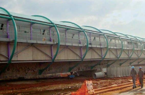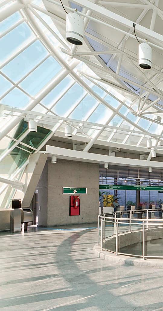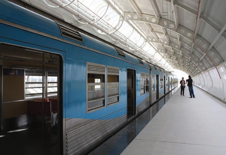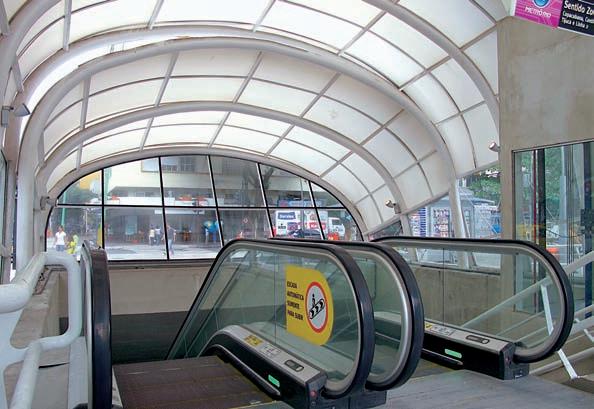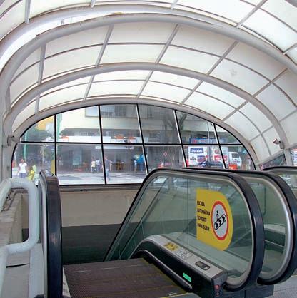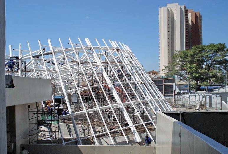 mente nas estruturas civis dos edifícios. Houve, ainda, um período em que adotamos fortemente o uso de coberturas em estruturas espaciais, especialmente em estações de superfície. Hoje, o que temos de novidade é a aplicação do aço também em estruturas para coberturas de poços complementadas por vedações transparentes, com o objetivo de ampliar o nível de iluminação dos ambientes subterrâneos. Há inúmeras vantagens na adoção da tecnologia do aço, mas a principal é o ganho de tempo para conclusão das etapas.