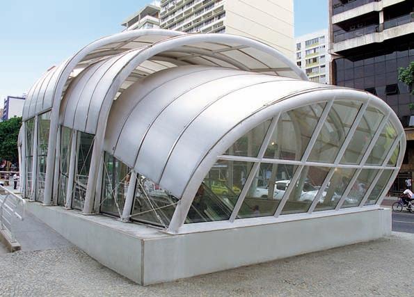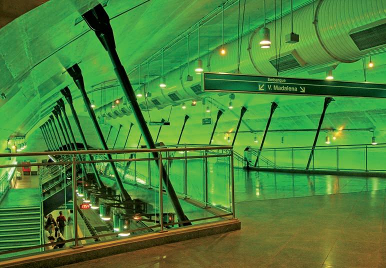 IA – Os sistemas metroviários diferem de acordo com o tamanho e o grau de adensamento das cidades. Por exemplo, em cidades como São Paulo e Rio de Janeiro, cujas áreas urbanas estão densamente ocupadas e verticalizadas, o grande desafio é criar trajetos e obras com o menor nível de impacto ambiental, pois as cidades não conseguem mais absorver altos graus de interferência. Este fato termina por influenciar e determinar os métodos e características construtivas. As soluções arquitetônicas devem obrigatoriamente basear-se em eficientes relações custo/benefício e certamente o uso do aço atende a essa necessidade, agregando o diferencial da agilidade dos processos e a versatilidade de propostas arquitetônicas. ( c . p.) M