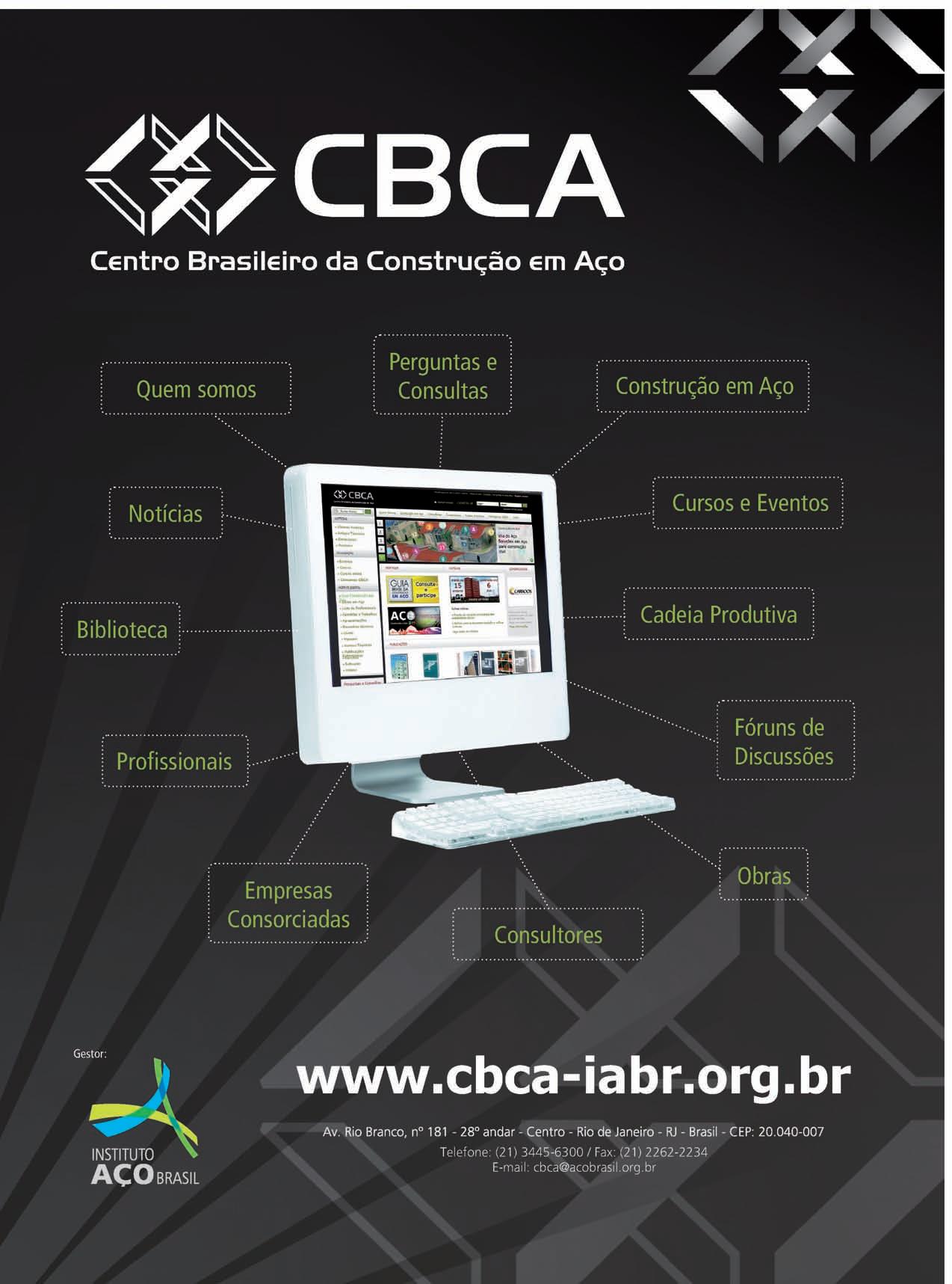 CBCA: Av. Rio Branco, 181 – 28º andar 20040-007 – Rio de Janeiro/RJ Tel.: (21) 3445-6332 cbca@acobrasil.org.br www.cbca-iabr.org.br