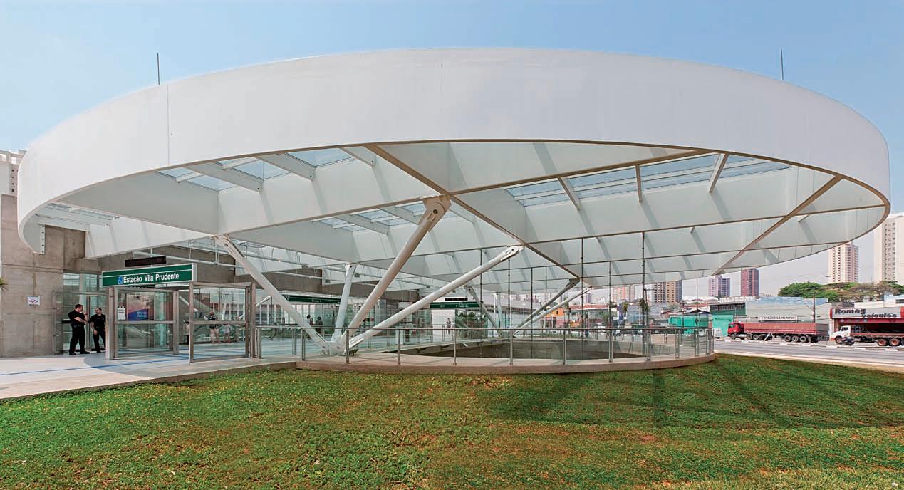 Na Estação Vila Prudente, por exemplo, a cobertura em aço e vidro, com formato de uma imensa grelha, dividida em duas áreas circulares de diâmetros diferentes, se destaca no entorno da Zona Leste paulistana. O