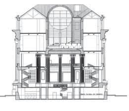Para Roberto Loeb, o novo espaço e seu piso de vidro simbolizam a contemporaneidade na arquitetura antiga. A transparência da cobertura e do piso permite que a luz atravesse os vitrais e chegue até o hall central. As janelas do antigo poço de ventilação podem ser vistas através das chapas brancas de tela perfurada que revestem o novo átrio, onde são realizadas exposições, palestras, peças teatrais e apresentações musicais