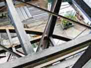 A estrutura em aço foi a única solução para que toda a obra fosse viabilizada, relata o arquiteto. “Todo o novo vigamento da laje e toda a estrutura da edificação projetada foram executados com componentes metálicos visando a rapidez de execução e o menor peso próprio”, reitera Hue. Outras características da construção metálica, como limpeza da obra, precisão das medidas e elegância para vencer vãos, são lembradas pelo arquiteto para apoiar tal decisão. (I.G.) M