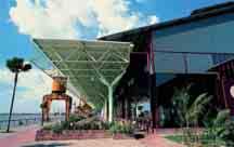 Totalmente reconstruído, o complexo Estação das Docas foi inaugurado em 2000 e hoje recebe milhares de visitantes por dia, em busca das histórias e belezas de Belém do Pará. À esquerda e à direita, detalhes dos novos boulevards, dedicados às artes, à cultura e à gastronomia: lojas, restaurantes, museu, teatro e espaço para exposições são algumas de suas atrações. Nas fotos acima, exemplo da utilização do aço no projeto: marquise em balanço, separada da antiga construção, concebida a partir de estrutura metálica espacial