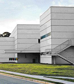 que chegam a 60 metros nos ambientes fabris.“Além disso,o uso de elementos metálicos permitiu uma obra limpa,sem desperdícios e executada em um curto espaço de tempo”,completa Madeira. Posicionados paralelamente,os quatro blocos independentes da nova fábrica somam uma área construída de 8.500 m 2.As estruturas e coberturas aparentes,combinadas com grandes esquadrias envidraçadas nas fachadas e cercadas por uma sucessão de pórticos metálicos,garantem unidade ao conjunto.