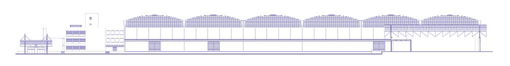 um bloco administrativo em estrutura metálica,no entanto,é o que define a resolução plástica da edificação.