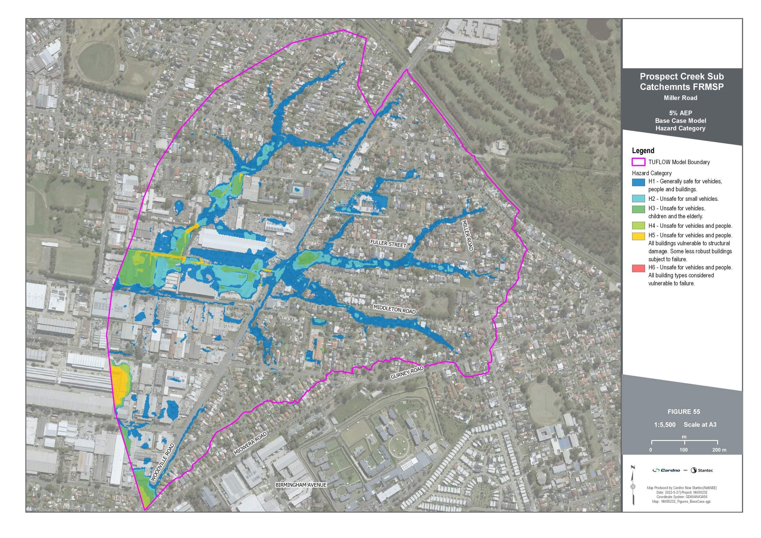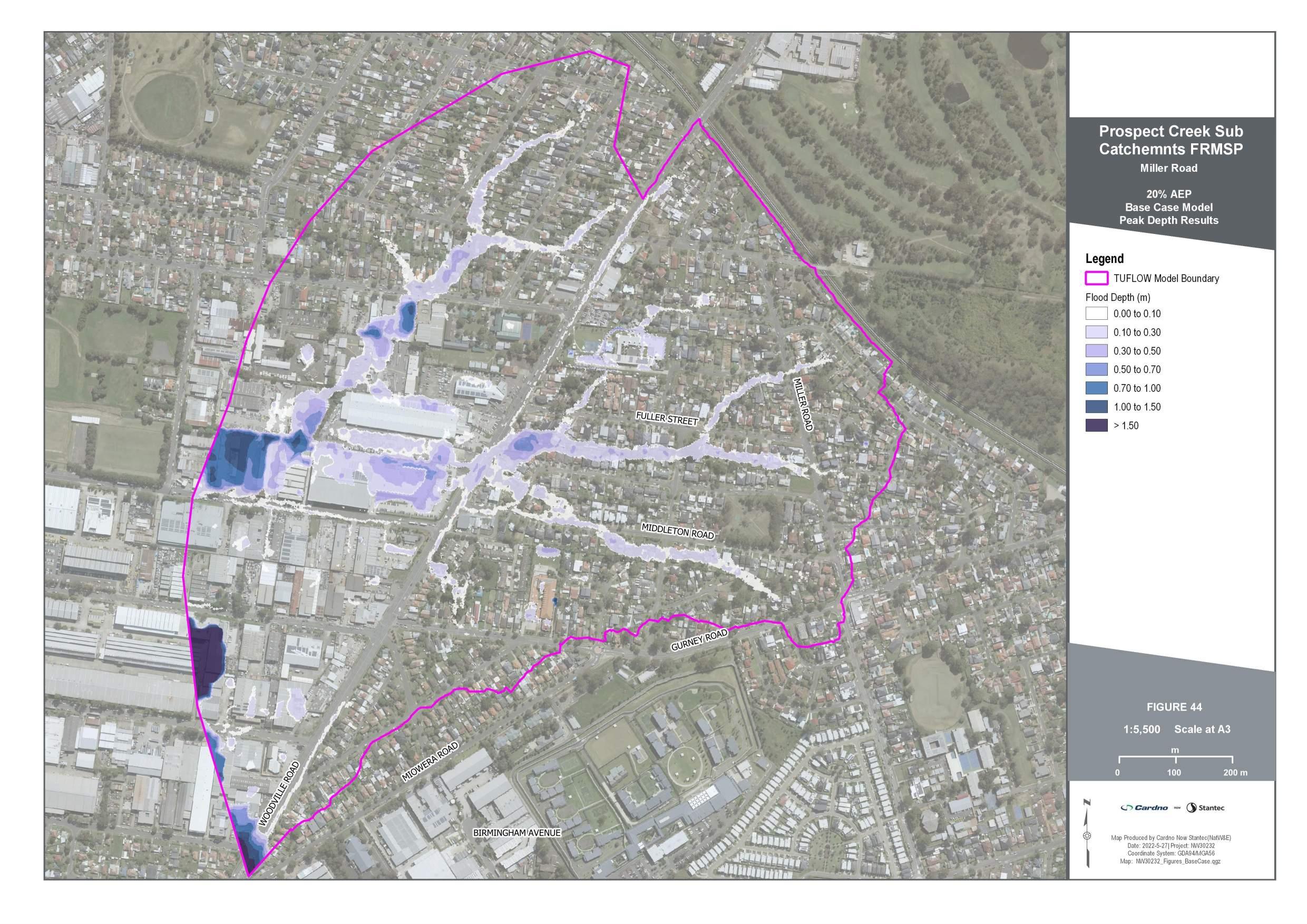 Draft Final Flood Risk Management Study and Plan Prospect Creek Sub-Catchments 304600207 | 22 March 2024 v Subcatchment Total Properties Base Case Flood Affected Property 20% AEP 5% AEP 2% AEP 1% AEP PMF Georges Hall 977 115 160 205 228 337 Lansdowne 1,234 144 183 213 228 336 Miller Road 569 106 122 136 140 179 Villawood 4,893 733 868 924 978 1,829 Total 7,502 1,092 1,326 1,471 1,567 2,667