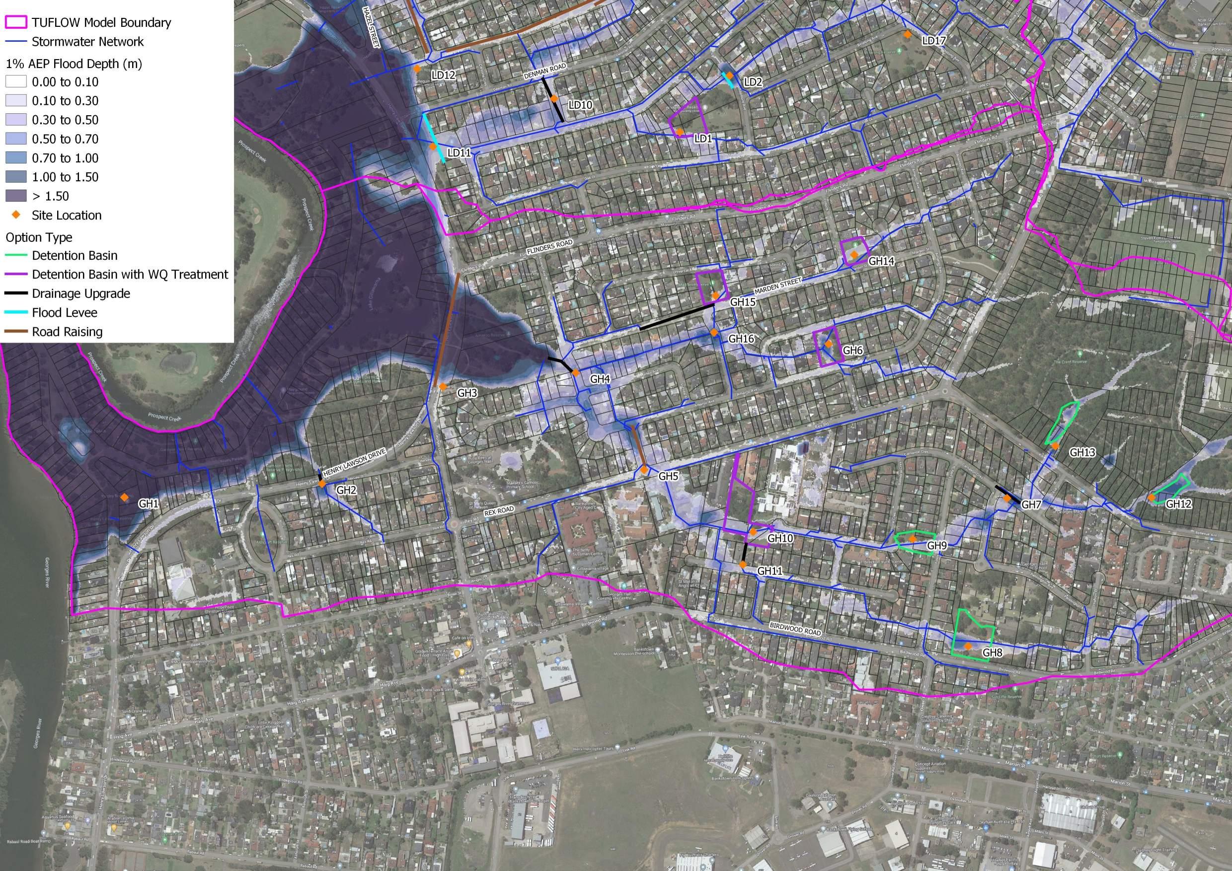 > Option identification and preliminary option assessment and optimisation – The identification of an inclusive range of FRM options to address local or broad FRM issues for the existing community and new development. Having identified the FRM issues to address and an inclusive range of FRM options worthy of consideration, the viability of these options needed to be tested to determine if they warranted more detailed assessment.