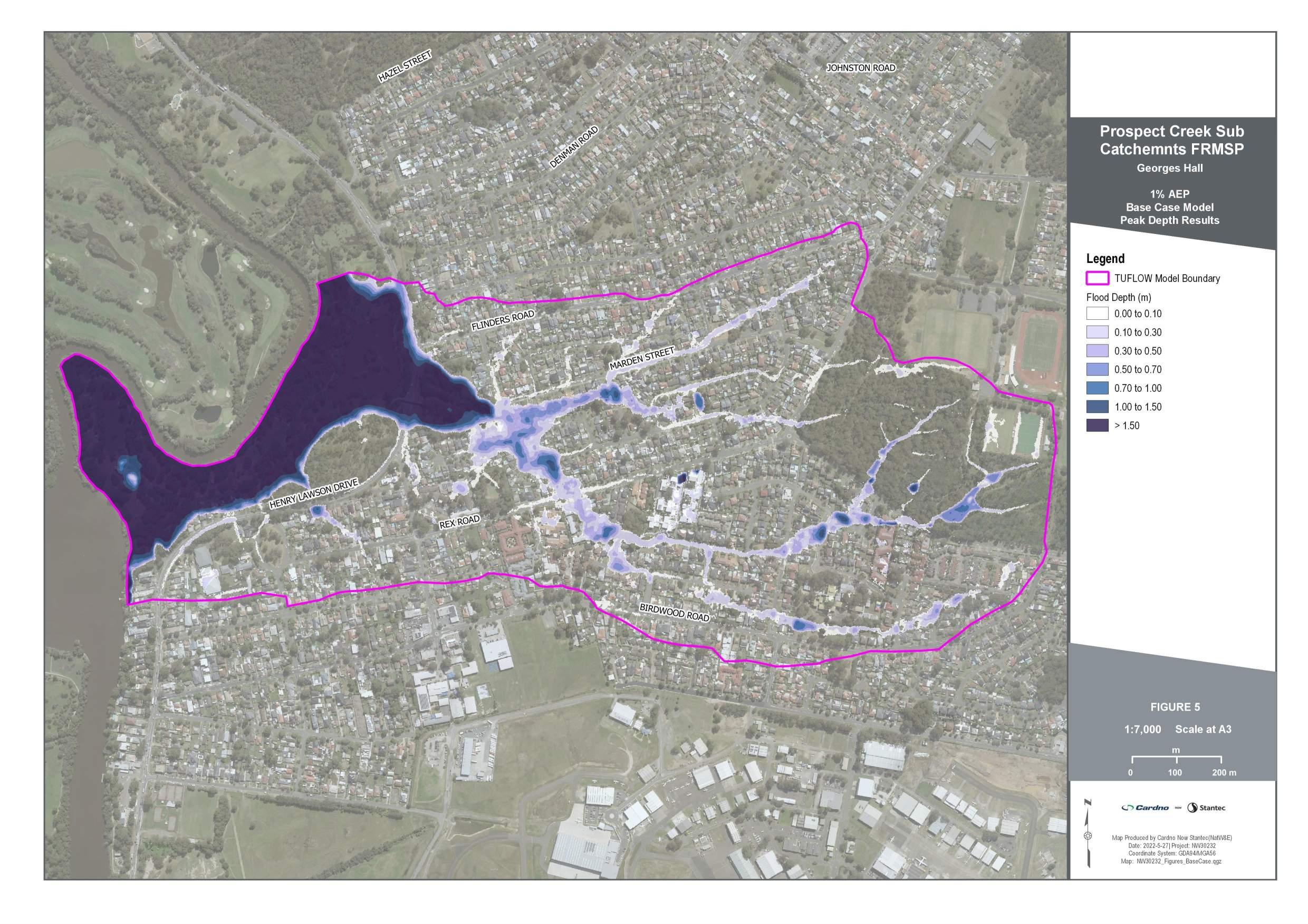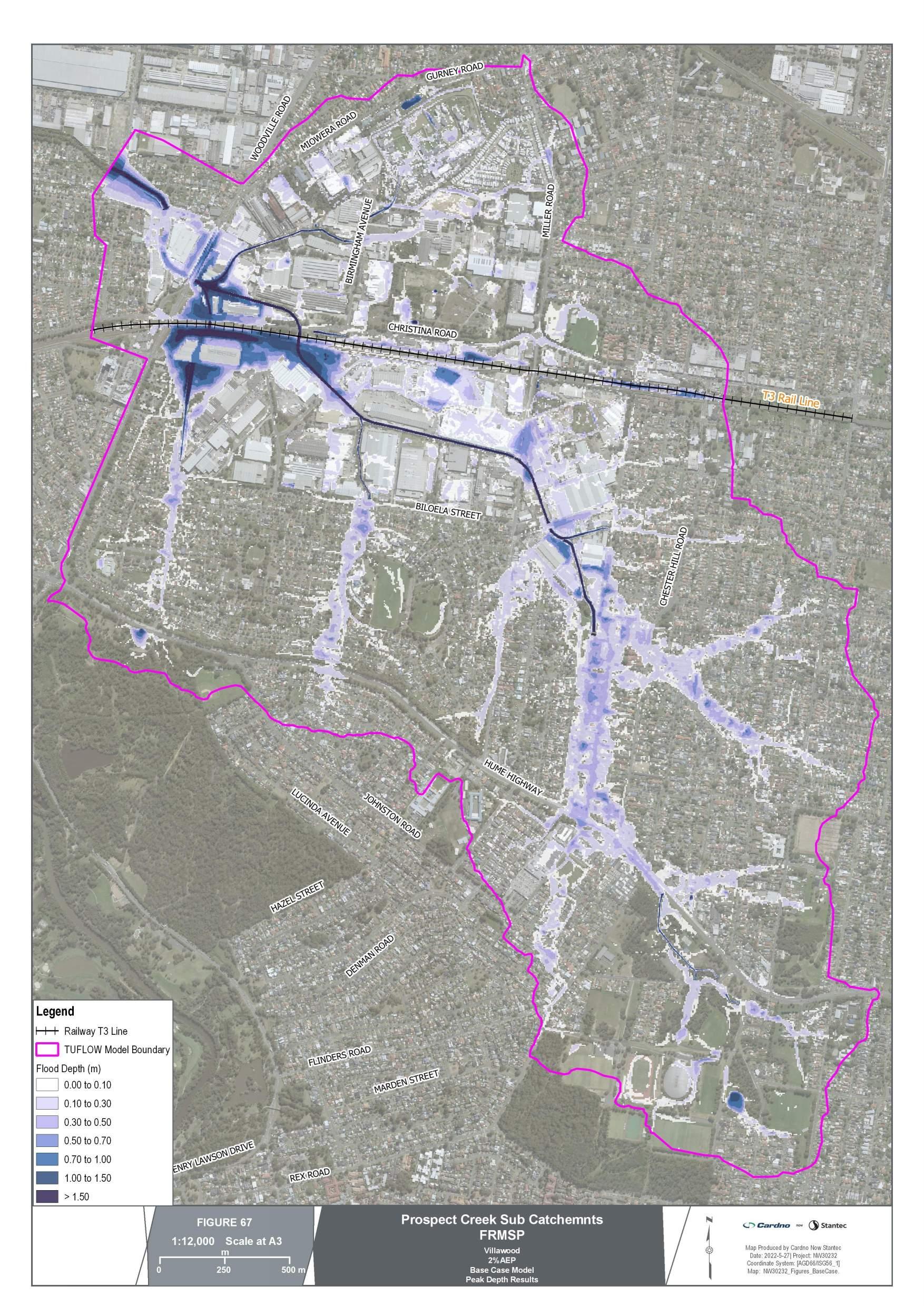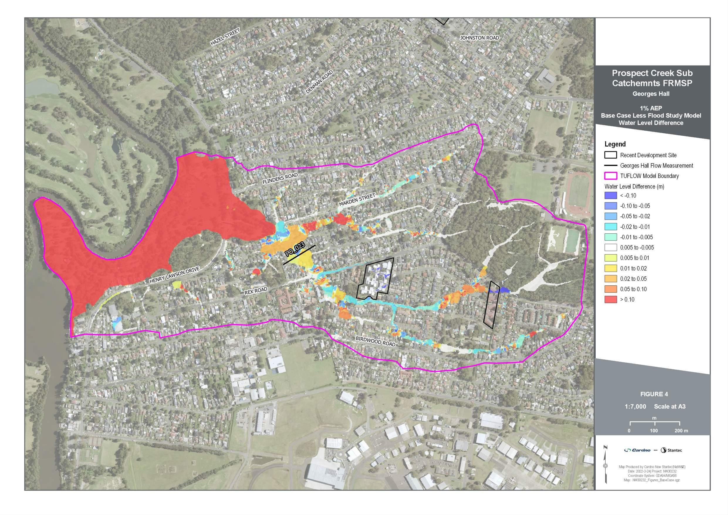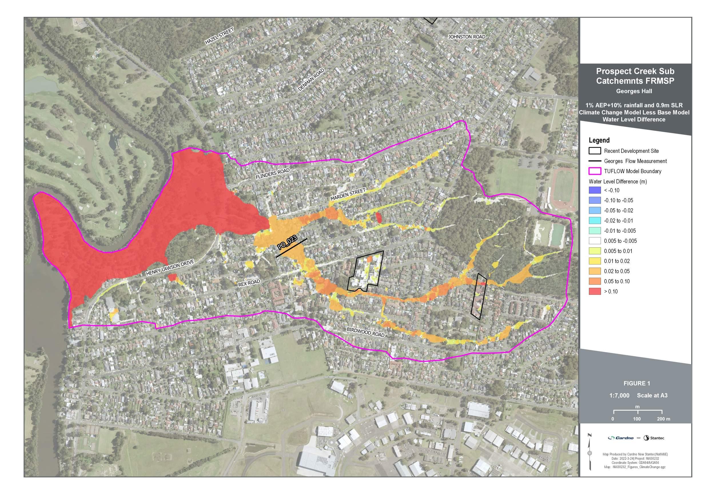 Stantec Australia Pty Ltd (formerly Cardno) was commissioned by Canterbury-Bankstown Council (‘Council’, or CBC) to undertake a Flood Risk Management Study and Plan (FRMS&P) for the Prospect Creek SubCatchments Study Area. The study area consists of the catchment of Prospect Creek that lies within the Canterbury-Bankstown Council Local Government Area (LGA) divided into four sub-catchments; Georges Hall, Lansdowne, Miller Road and Villawood.