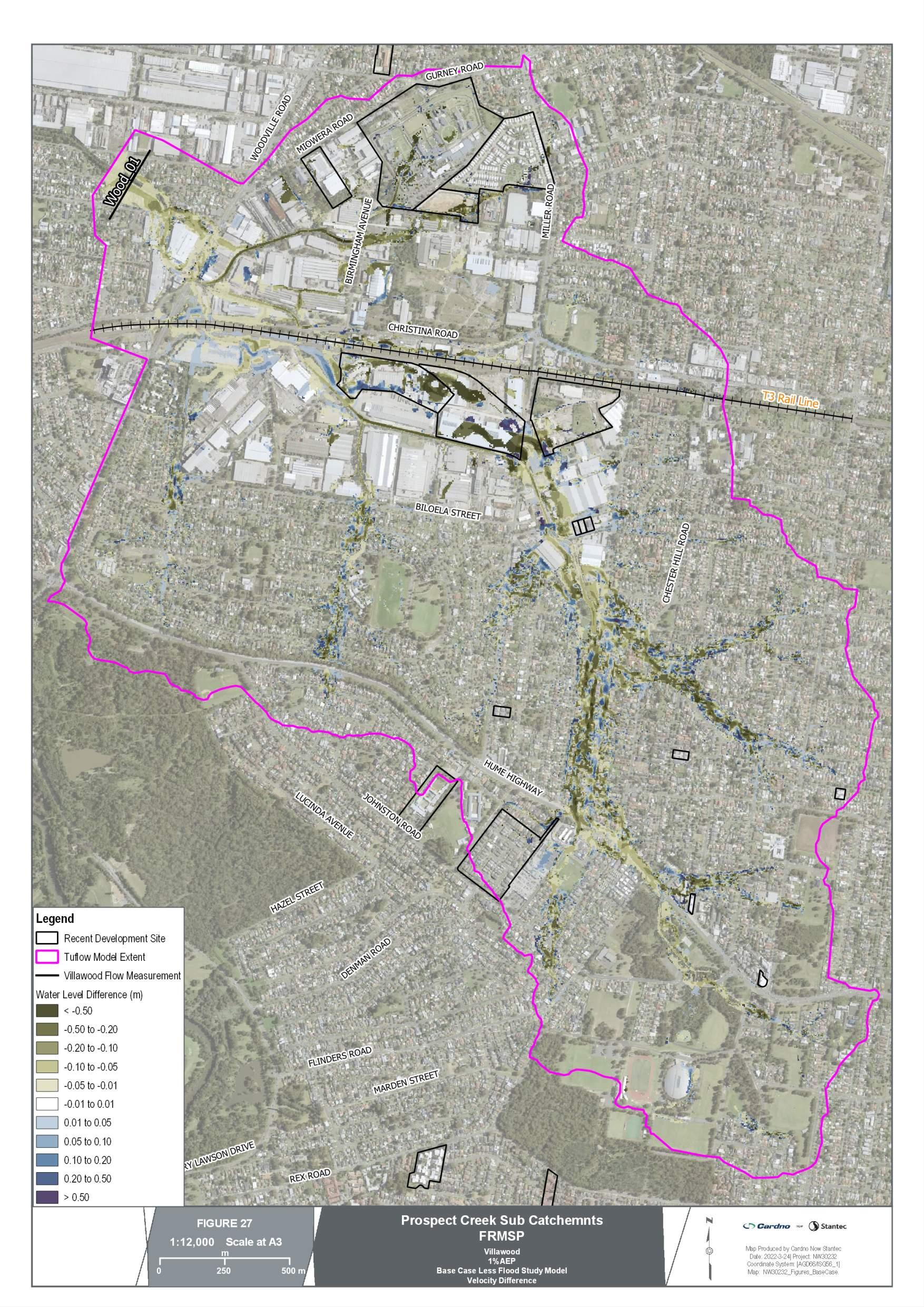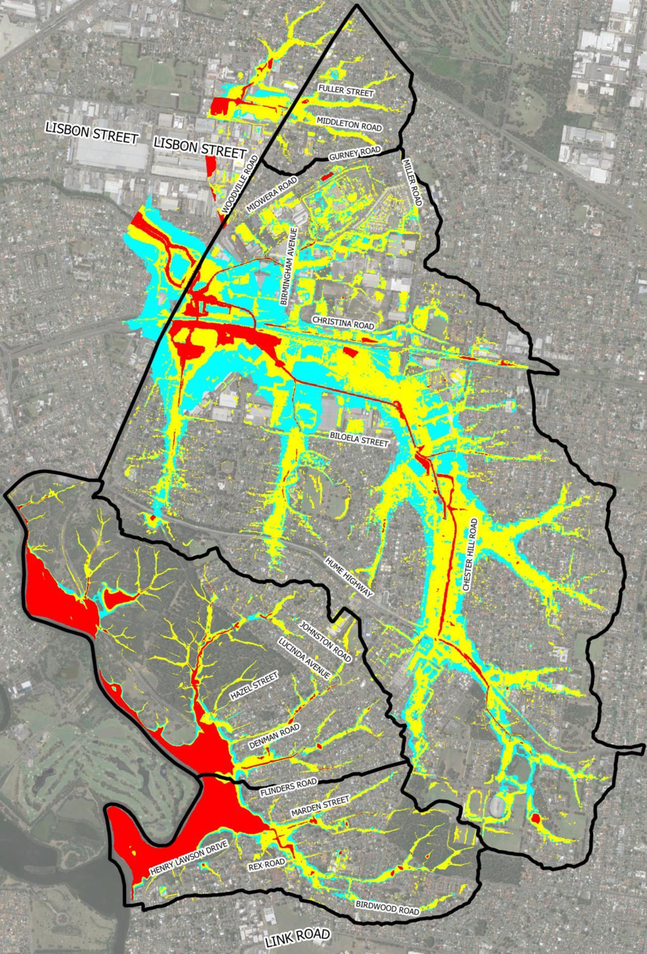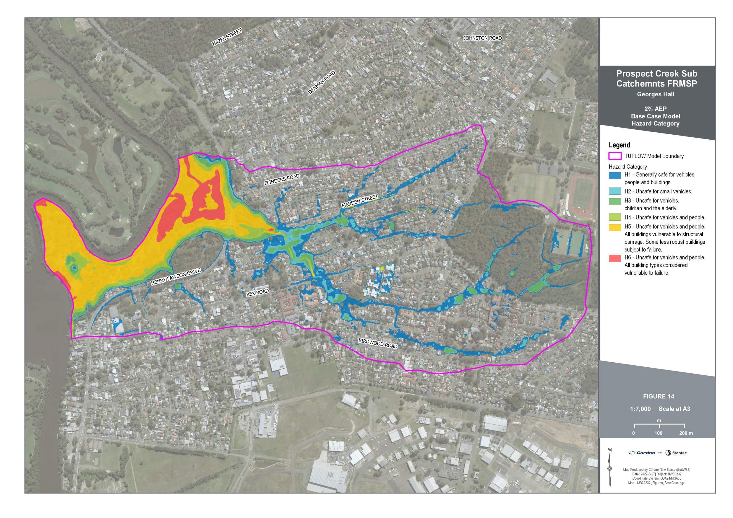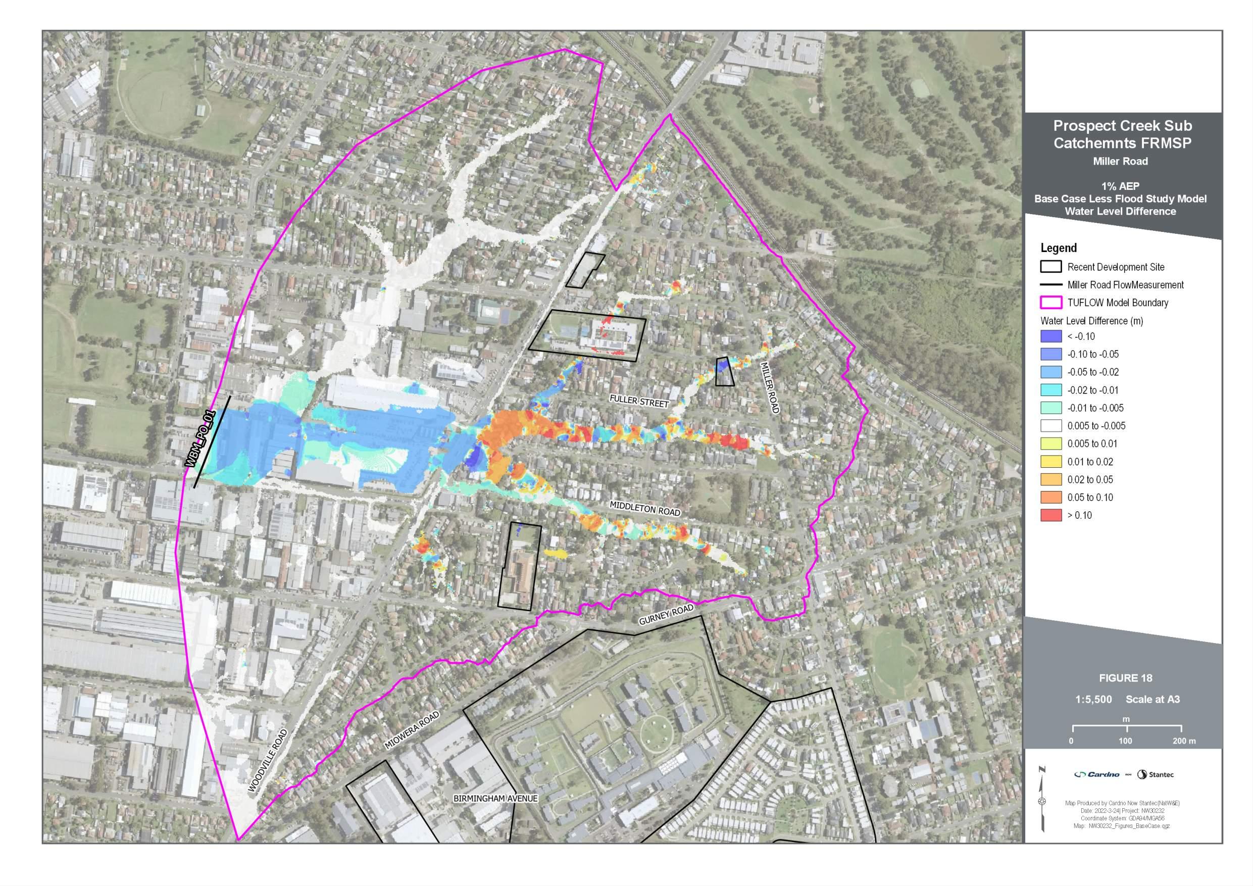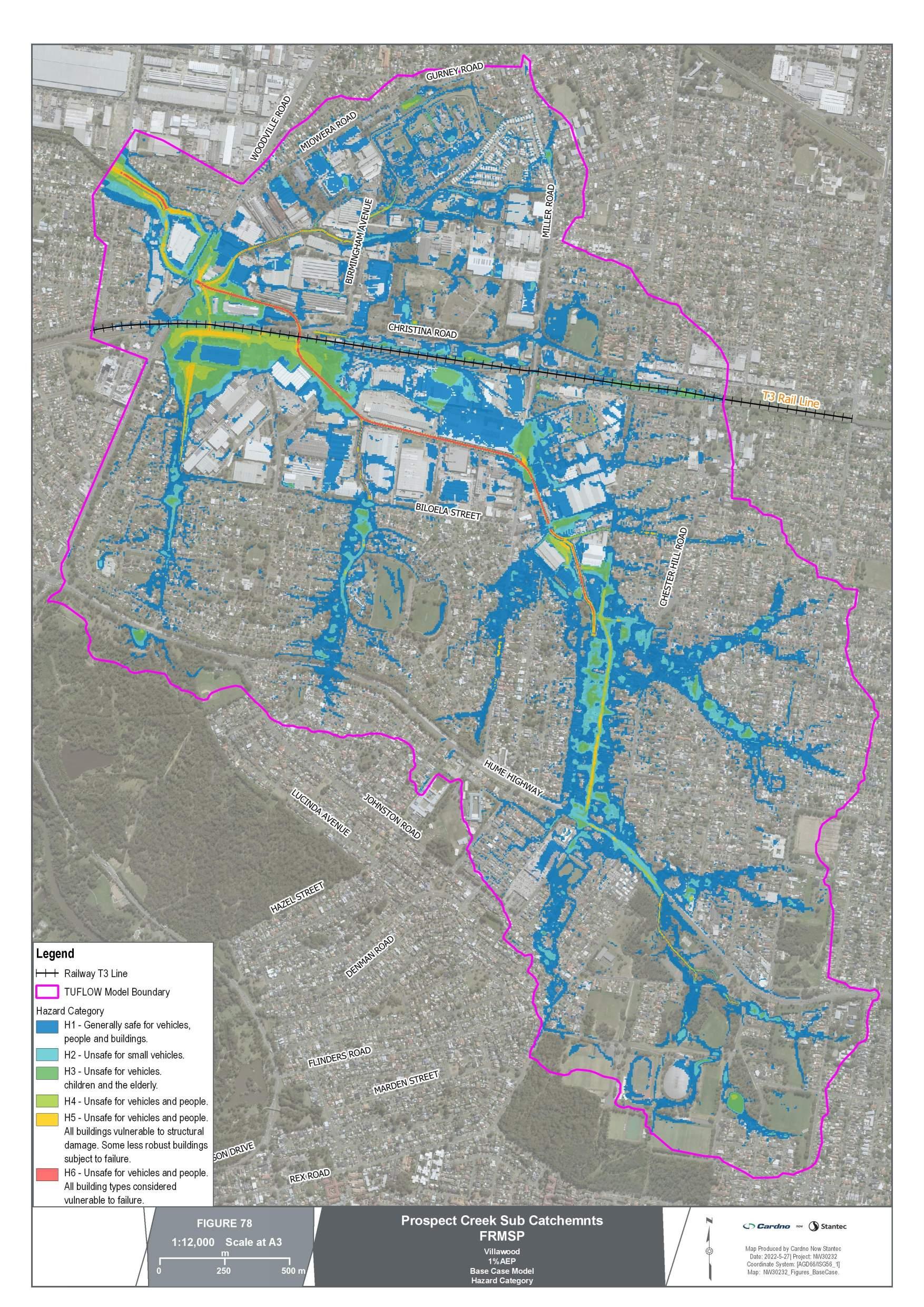 Stantec Australia Pty Ltd (formerly Cardno) was commissioned by Canterbury-Bankstown Council (‘Council’, or CBC) to undertake a Flood Risk Management Study and Plan (FRMS&P) for the Prospect Creek SubCatchments Study Area. The study area consists of the catchment of Prospect Creek that lies within the Canterbury-Bankstown Council Local Government Area (LGA) divided into four sub-catchments; Georges Hall, Lansdowne, Miller Road and Villawood.