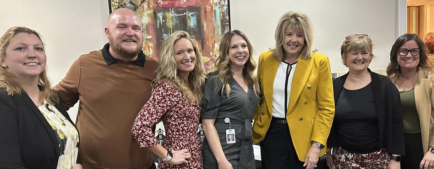 From left, Edison Principal Janine Crain, Edison Teacher Andrew Ellis, College View Teacher Jordan Preston, College View Principal Amy Andersen, Superintendent Dr. Vickie Murillo, Abraham Lincoln Teacher Tricia Suchsland and AL Principal Bridgette Bellows celebrate the Excellence in Teaching Awards on May 2, 2024.