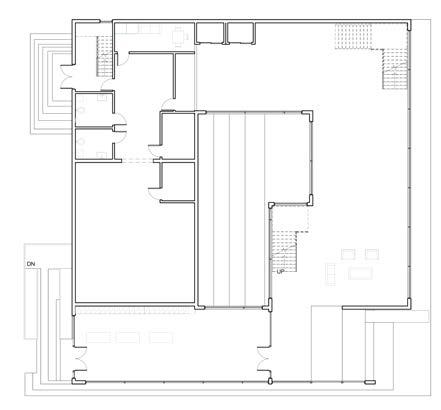 Auditorium 2. Flexible Shop 3. Reception 4. Garage Entrance