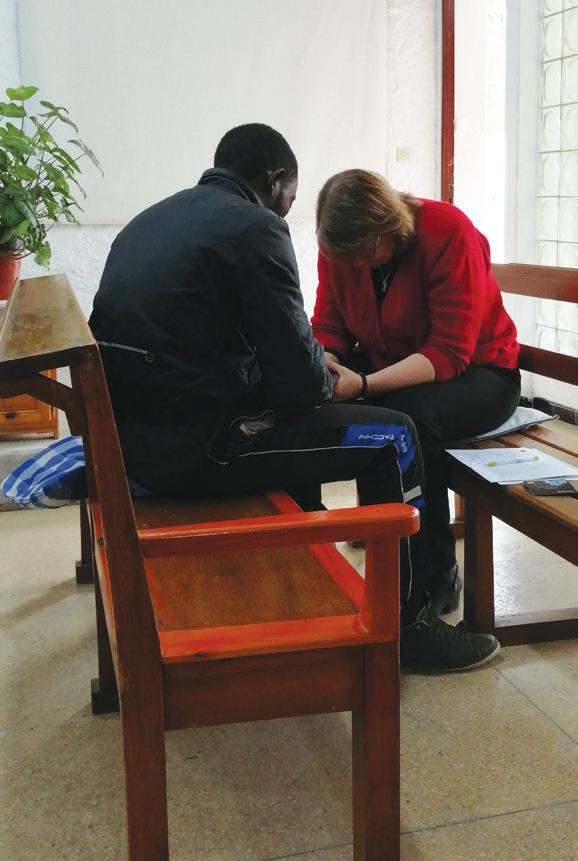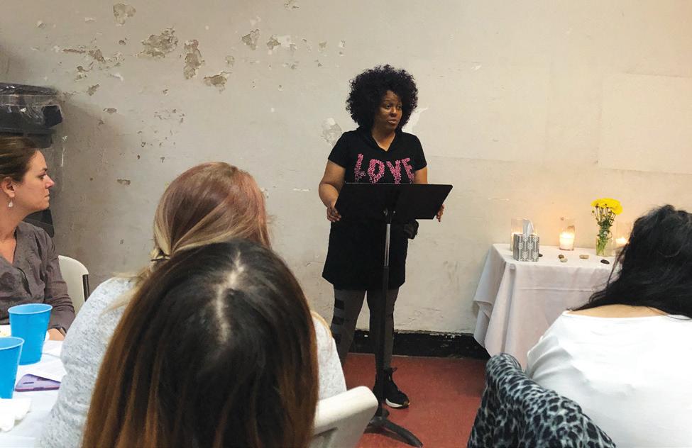 safe many other places. Building trust in relationships takes a lot of time. When we get together, we share a meal, work through a trauma-informed curriculum—learning about what happens to our brains when we experience trauma and developing healthy coping skills when we experience flashbacks or triggers. We bring in local experts to lead life skills workshops, including job skills, cooking, yoga, mindfulness, and public speaking. And all of our participants work one-on-one with a mentor to tell the story of their trauma and set goals, looking to the future with hope. I’ve heard women who were devastated by Christian pastors and scared to reenter even a church building come to an appreciate and be grateful for a Christian community of faith, claiming, “Now I see that there are good Christians.” I’ve held brand-new babies, and I’ve seen women who have always dropped out of every other group they have been placed in commit and finish the semester with us, saying, “This is the best home.” God is tearing down boundaries, and I get to witness those miracles!