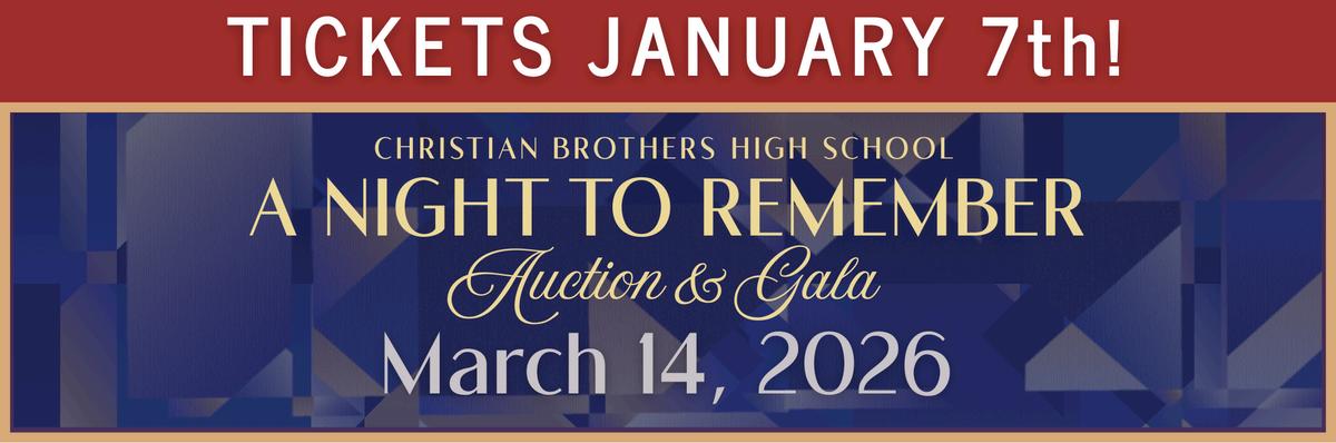 Get ready for an unforgettable evening of celebration, community, and impact! Join Auction Co-Chairs Judy Bernacchi and Samantha Ansted at 5:30 PM on Saturday, March 14, 2026, for Christian Brothers High School’s spectacular ‘A Night to Remember’ Auction & Gala This year’s event is truly one for the history books as we proudly celebrate 150 years of Christian Brothers High School! As our largest fundraiser of the year, every dollar raised directly supports CB education and tuition assistance, ensuring that a Christian Brothers education remains accessible and transformative for generations to come.