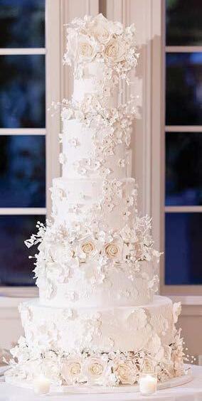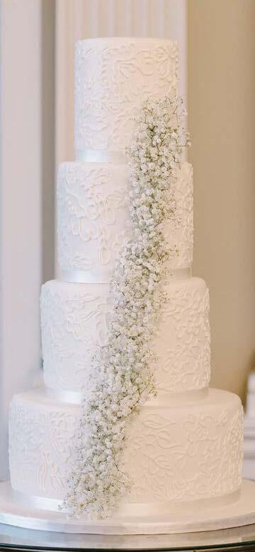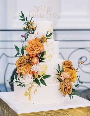 What happens when you marry classic white confections with pops of color and intricate detailing? Wedding cakes that are almost too pretty to eat, of course! While towering tiers of modern minimalism will never go out of style, elaborate embellishments make a statement through sugar flowers, lace-work, brushed metallics and hand painted design work. Regardless of your style, your cake is sure to taste as delicious as they look, especially if you take inspiration from any of these masterpieces.
