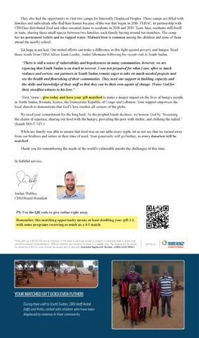Food. We all need it - yet around 768 million people in the world experience hunger. At the start of the year, CBM invited Canadian Baptists to feed the hungry through a matching grant opportunity. We asked for you to join us in giving hope to the hungry in places like South Sudan, the Democratic Republic of Congo, Rwanda, Kenya and Lebanon.