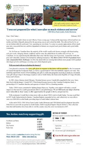 Hunger and food security continue to be a widescale, growing global issue. CBM remains committed to fighting hunger for the long haul. Our long-standing membership in the Canadian Foodgrains Bank is one of the very impactful relationships assisting us in this fight. As the prophet Isaiah declares, we honour God by “loosening the chains of injustice, sharing our food with the hungry, providing the poor with shelter, and clothing the naked.” (Isaiah 58:6-7, NIV)