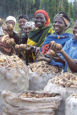 Able to bring in a second good crop of potatoes (a staple food in their region), the Ubuzima Bukomeza Guardians of Hope group celebrates.