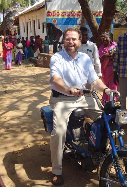 Gary takes a spin on a moped, to the delight of onlookers. India holds a special place in his heart: one of the most wildly colourful, noisy, chaotic places that somehow still works. India is also the birthplace of an independent Canadian Baptist mission.