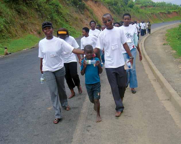 Memory walk to a nearby school to commemorate the courage of students who were shot by rebels on March 18, 1997 after refusing to separate into Hutu and Tutsi.
