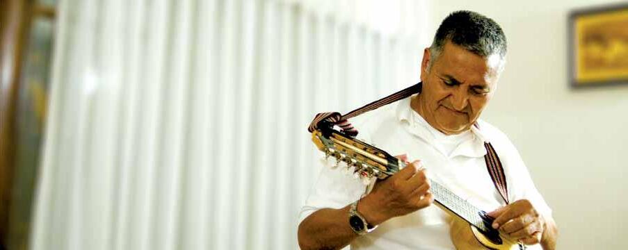 Senor Gutierrez shares his gift of music with visiting teams from Canada.