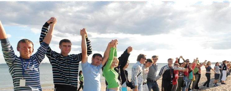 Stretched out along the shores of the Black Sea, thousands of Christian youth from former Eastern Bloc countries pass a Bible from person to person, a symbol of unity in sharing the message of Christ to all nations.