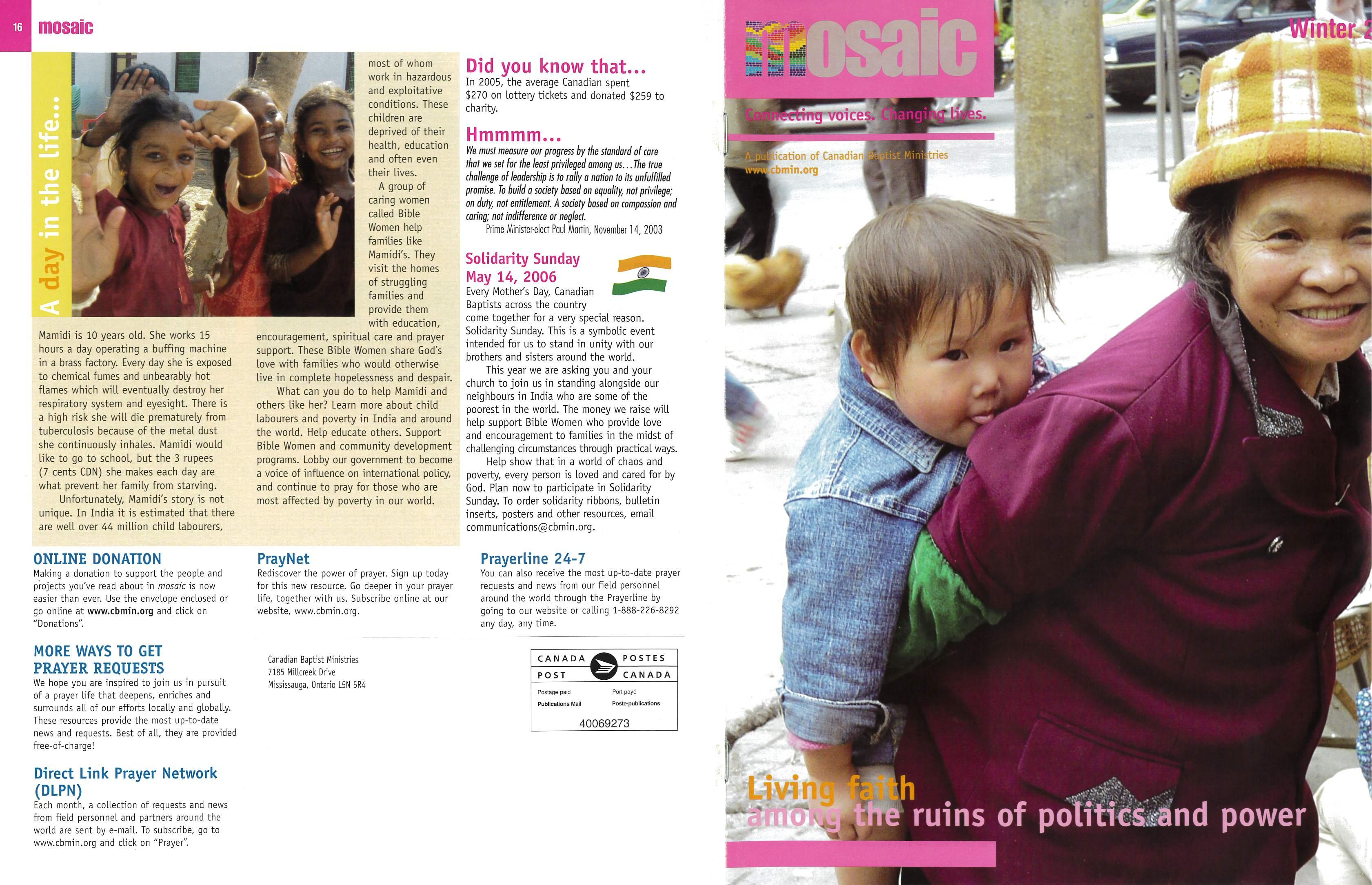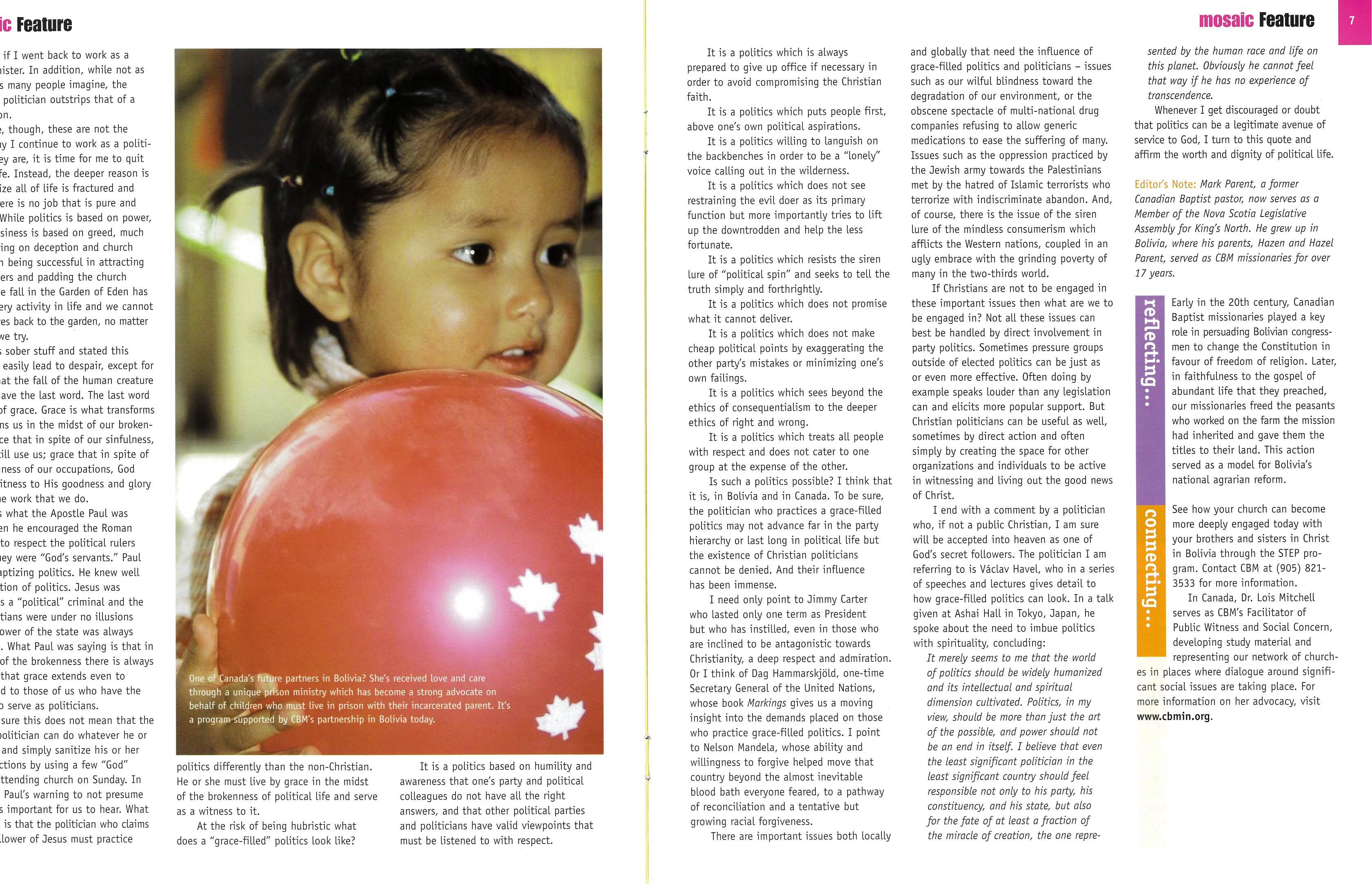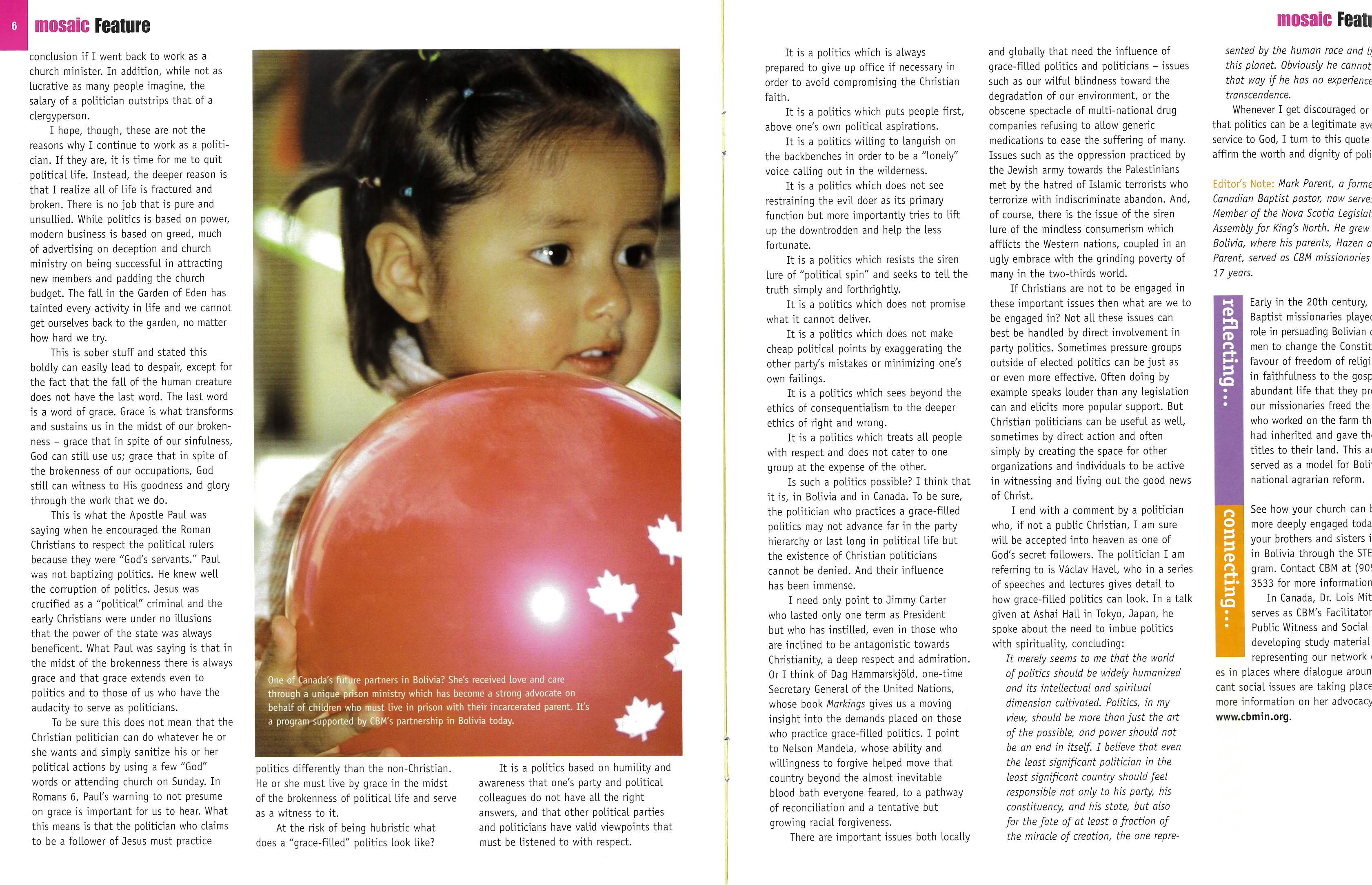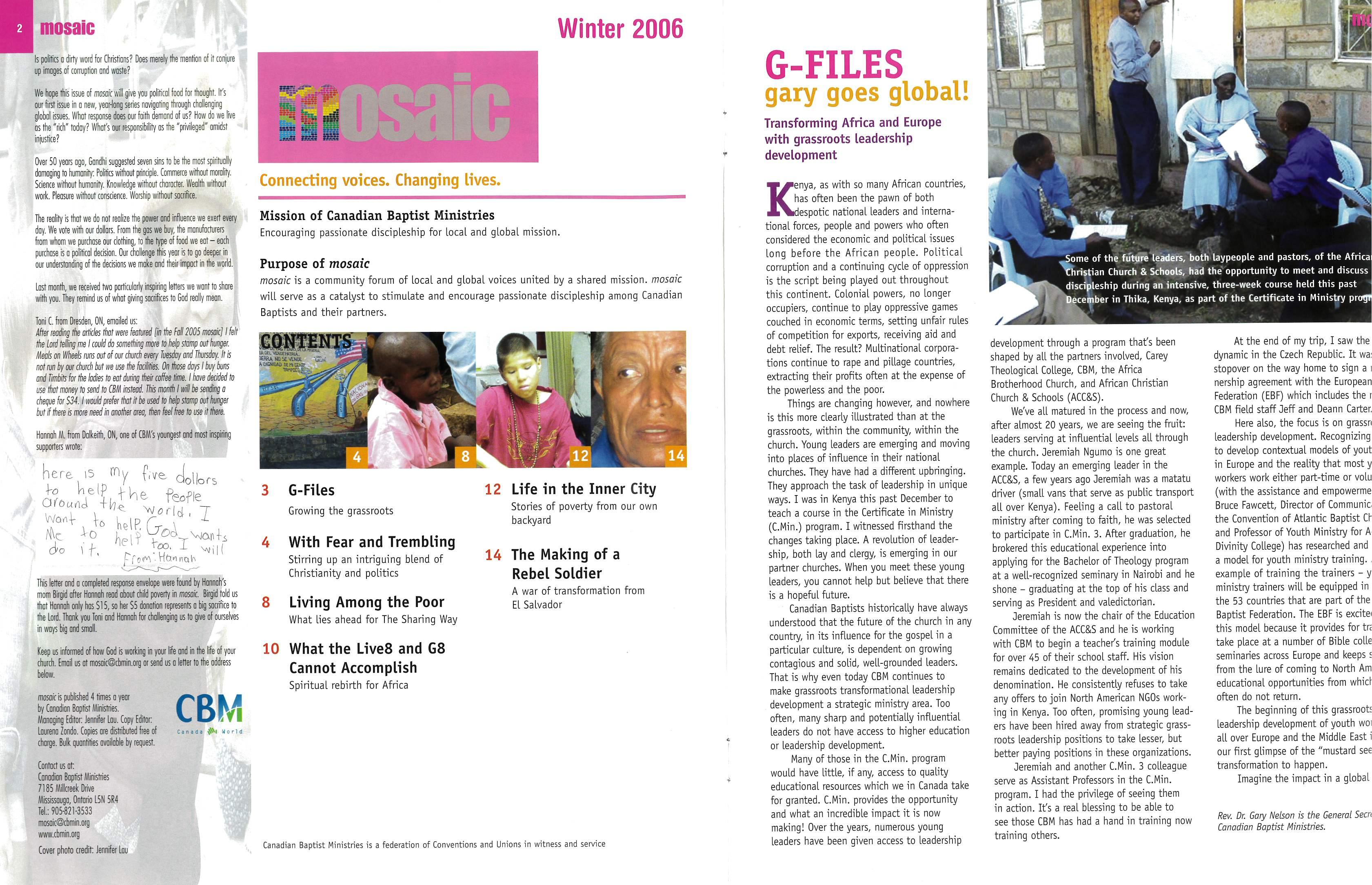 We hope this issue of Mosaic will give you political food for thought. It’s our first issue in a new, year-long series navigating through global issues.