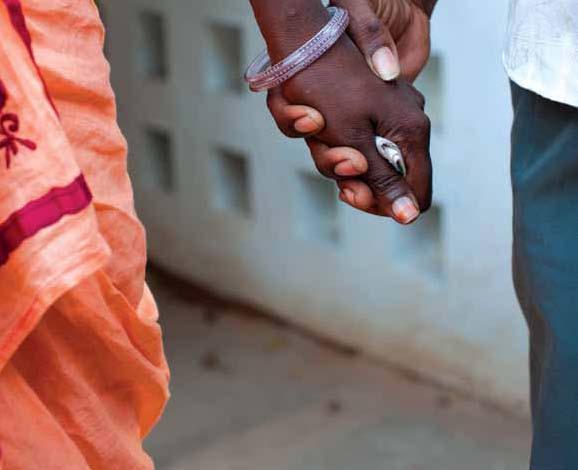 She speaks fondly of the matchmaking efforts of two community health volunteers who work with Guardians of Hope (GOH), a CBM program that provides care and support for AIDSaffected people. These volunteers live in the villages and are trained by GOH (led by CBM Field Staff Jasmine Jonathan) to recognize the symptoms of HIV and AIDS and provide counselling. They encourage people to go for testing and follow up to ensure that they stay on antiretroviral treatment, which improves health and prolongs life.