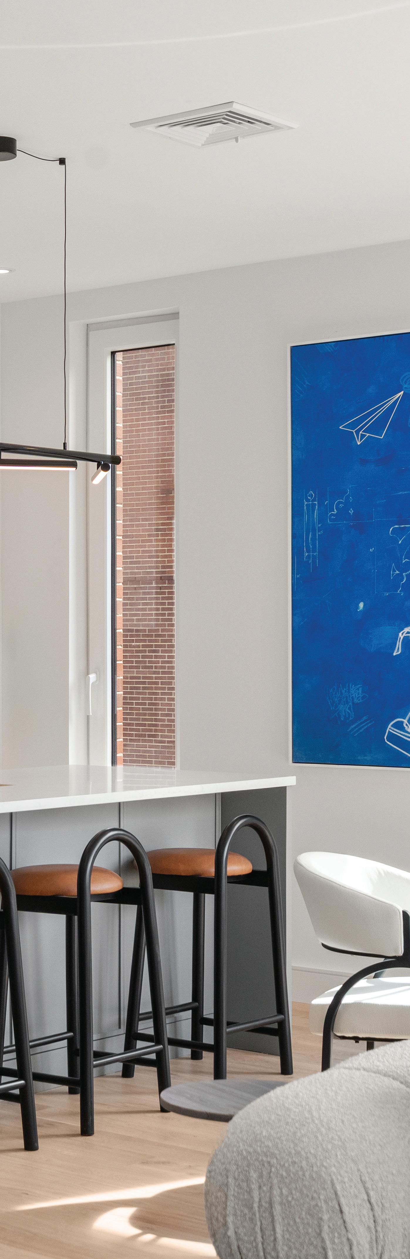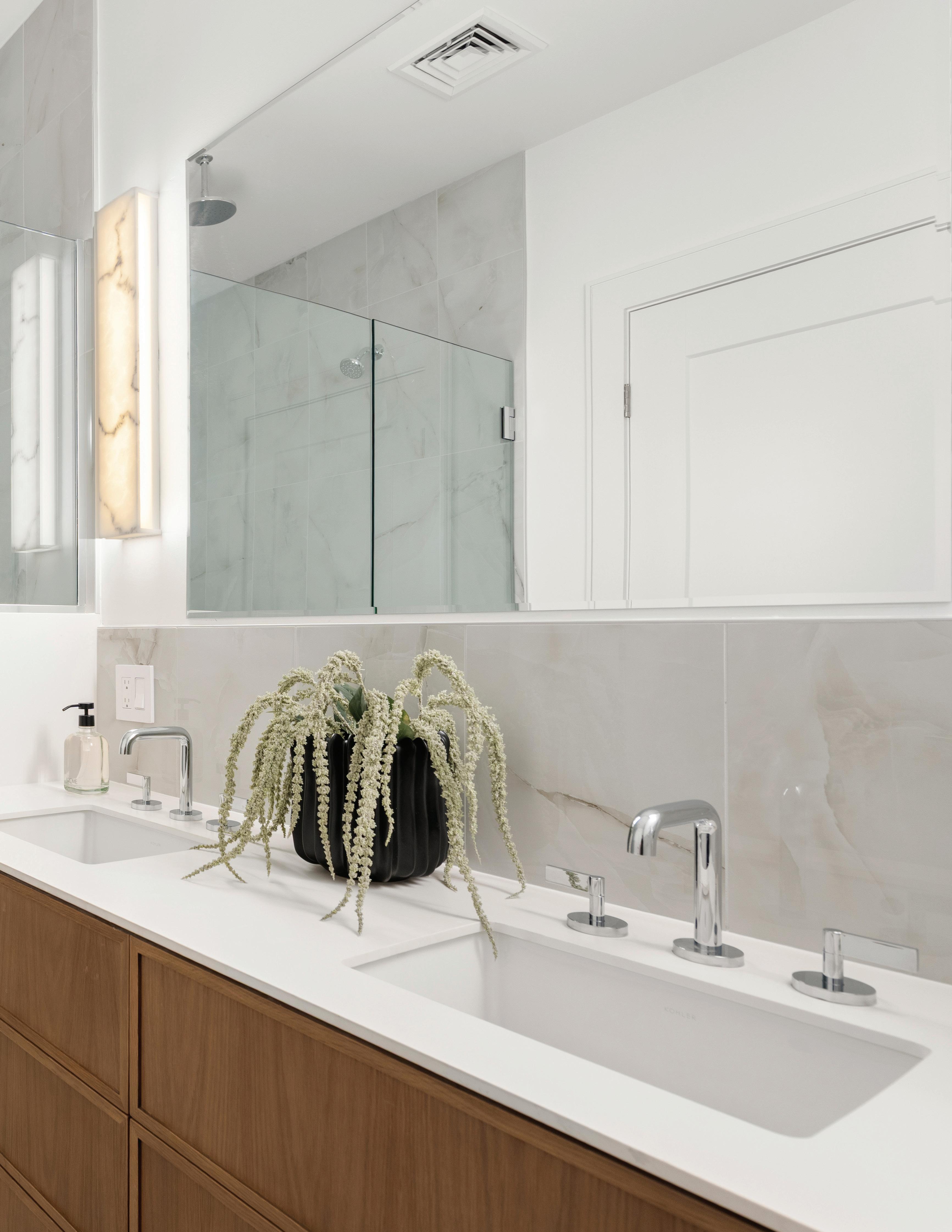 Pre-wired smart home features by an award-winning smart home firm ensure modern convenience and control, while upgraded light fixtures throughout enhance the ambiance of each residence. Luxurious & organic, spa-inspired bathrooms are equipped with premium fixtures, custom vanities with ample storage, stone countertops, and textural details throughout. Included in all primary bedrooms are on suite bathrooms with upgraded finishes and fixtures and custom double sink vanities.