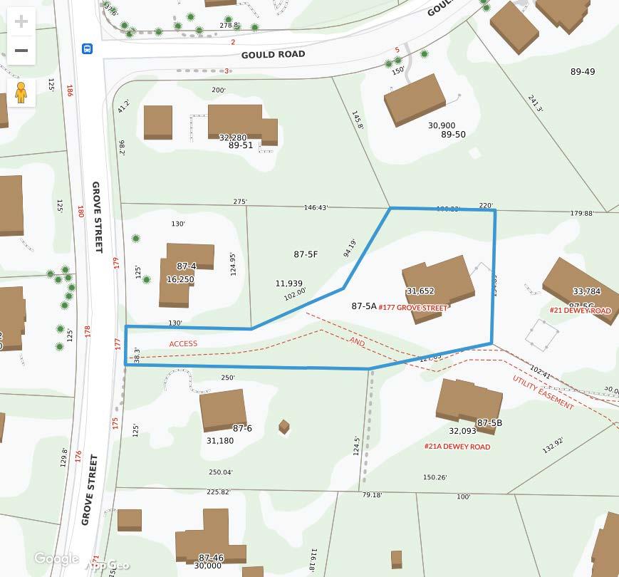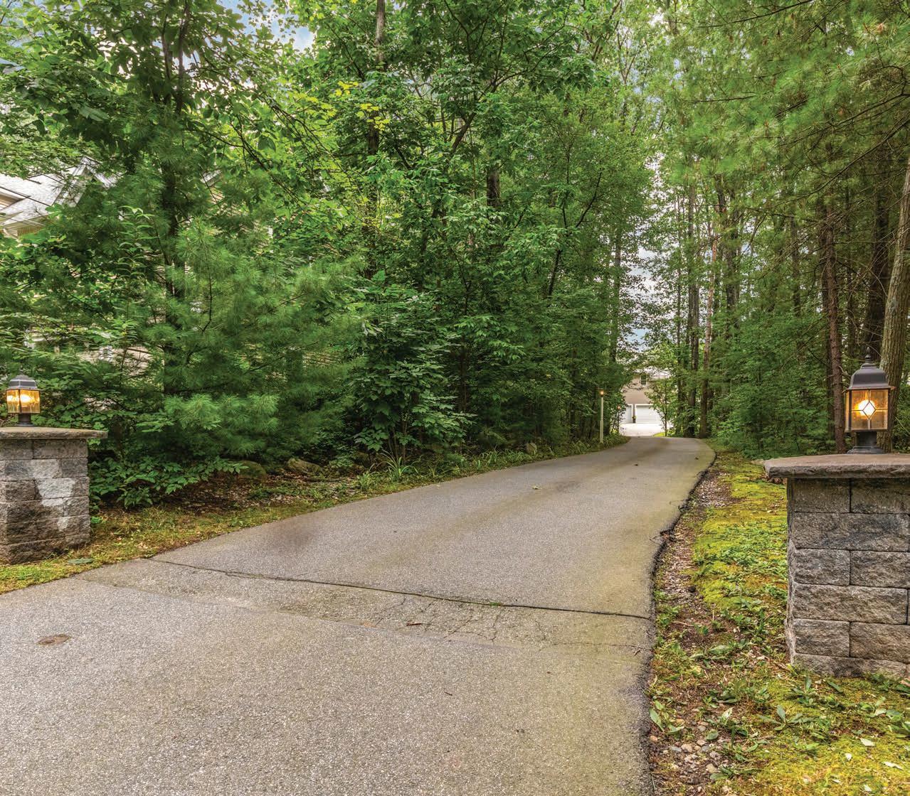 • Long private driveway off of Grove Street is marked by handsome fieldstone columns and white lampposts lighting the way through the tree-lined entrance
