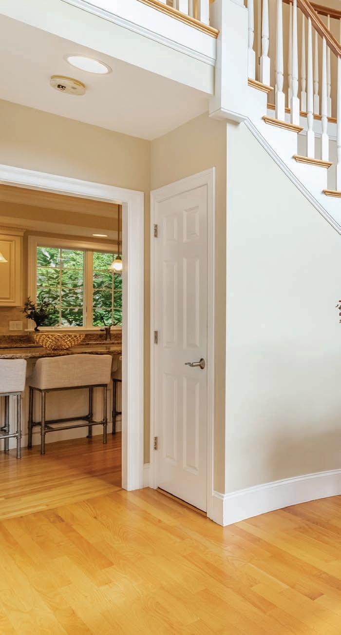 • Benjamin Moore® Briarwood clapboard siding with white trim