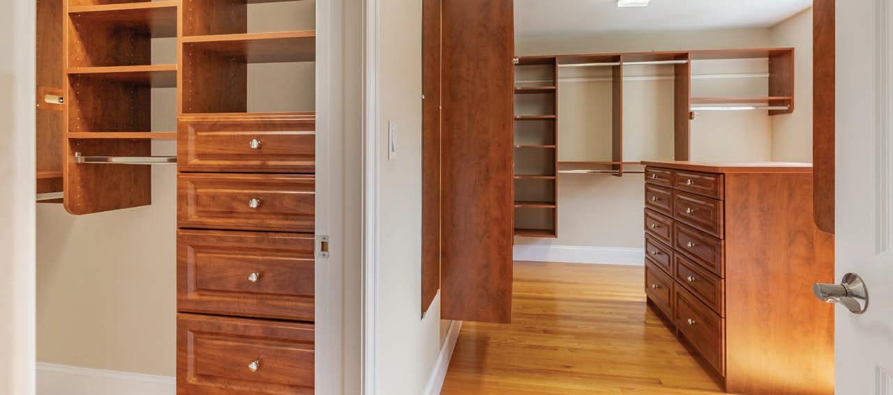 • Abundant floor-to-ceiling ivory cabinetry with beautiful dentil molding detail