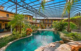 Centrally located, six-car plus, garage-pool home! 9-ft garage doors, 50-ft boat deep 2-bay garage & RV parking with hook-ups. This one-of-a-kind, custom home offers an open floor plan. Featuring 10-foot-high ceilings, Corian counters, mesh sunshades, vaulted ceilings and so much more.