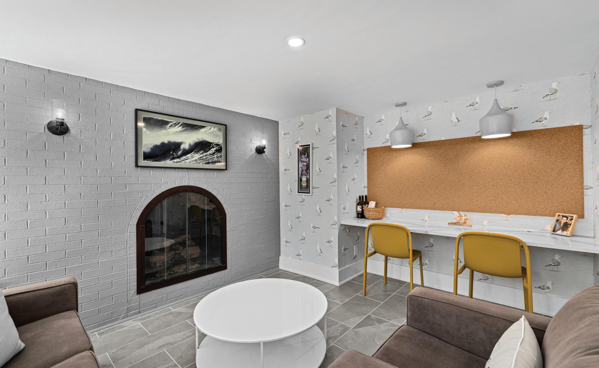 • Tiled family room hearth