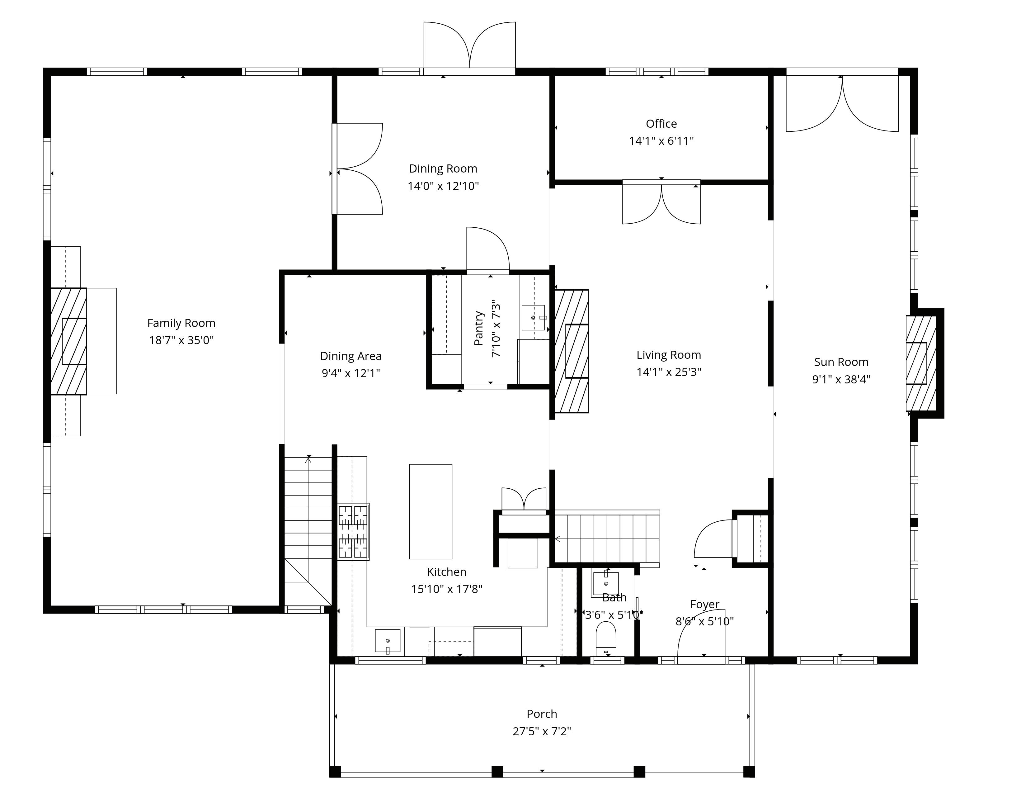 • Removed both sets of French doors from living room to sunroom