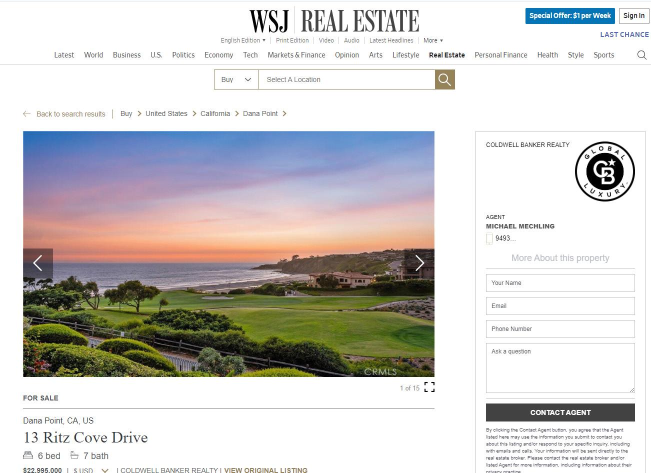 • Showcased your premier property in the August issue on the WSJ.com and/or MansionGlobal.com top market tile page for Los Angeles. This tile ad, one of only four on the page, showcased your premier listing and provided regionally relevant editorial. These sites attract millions of unique visitors per month.
