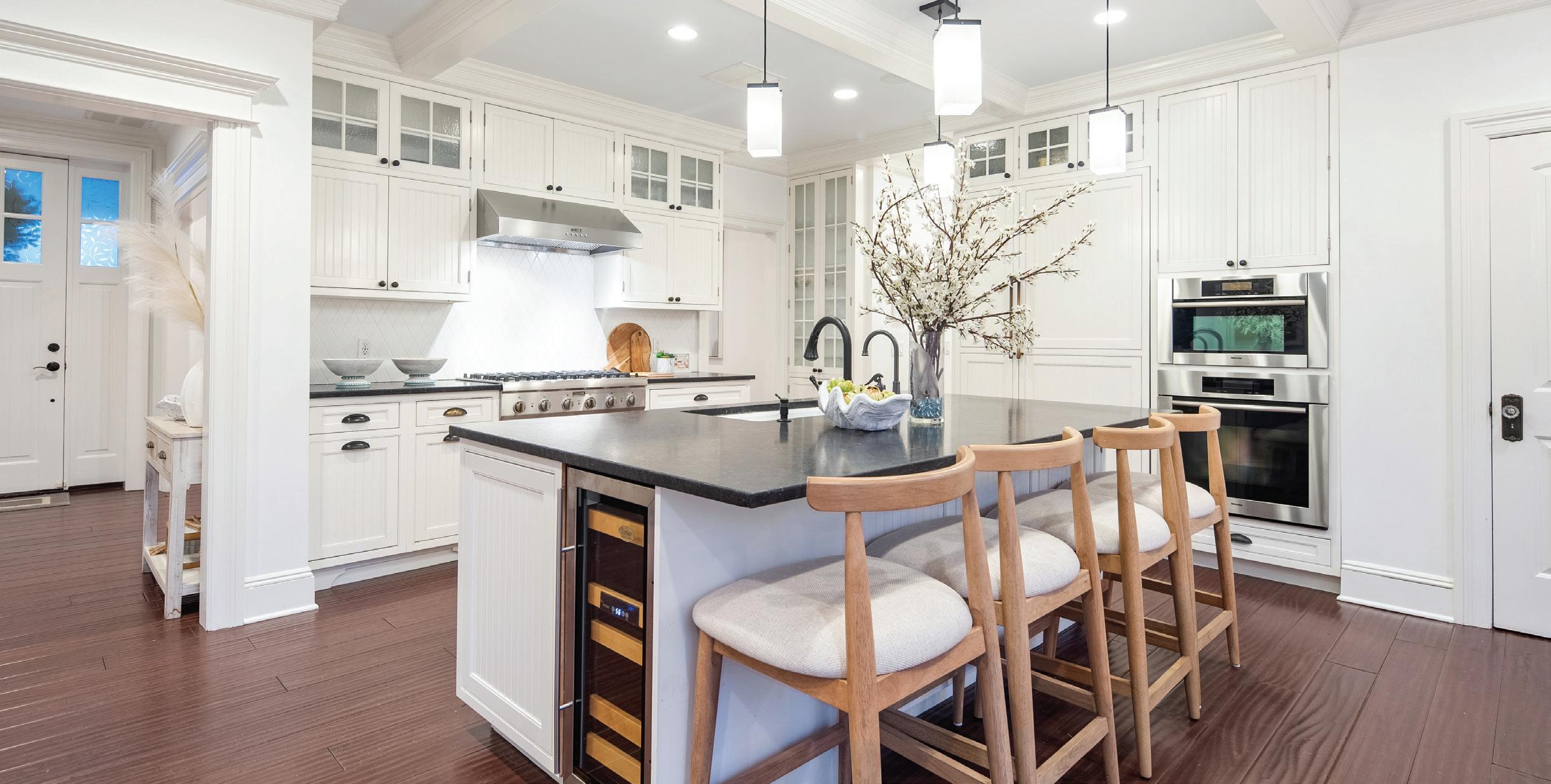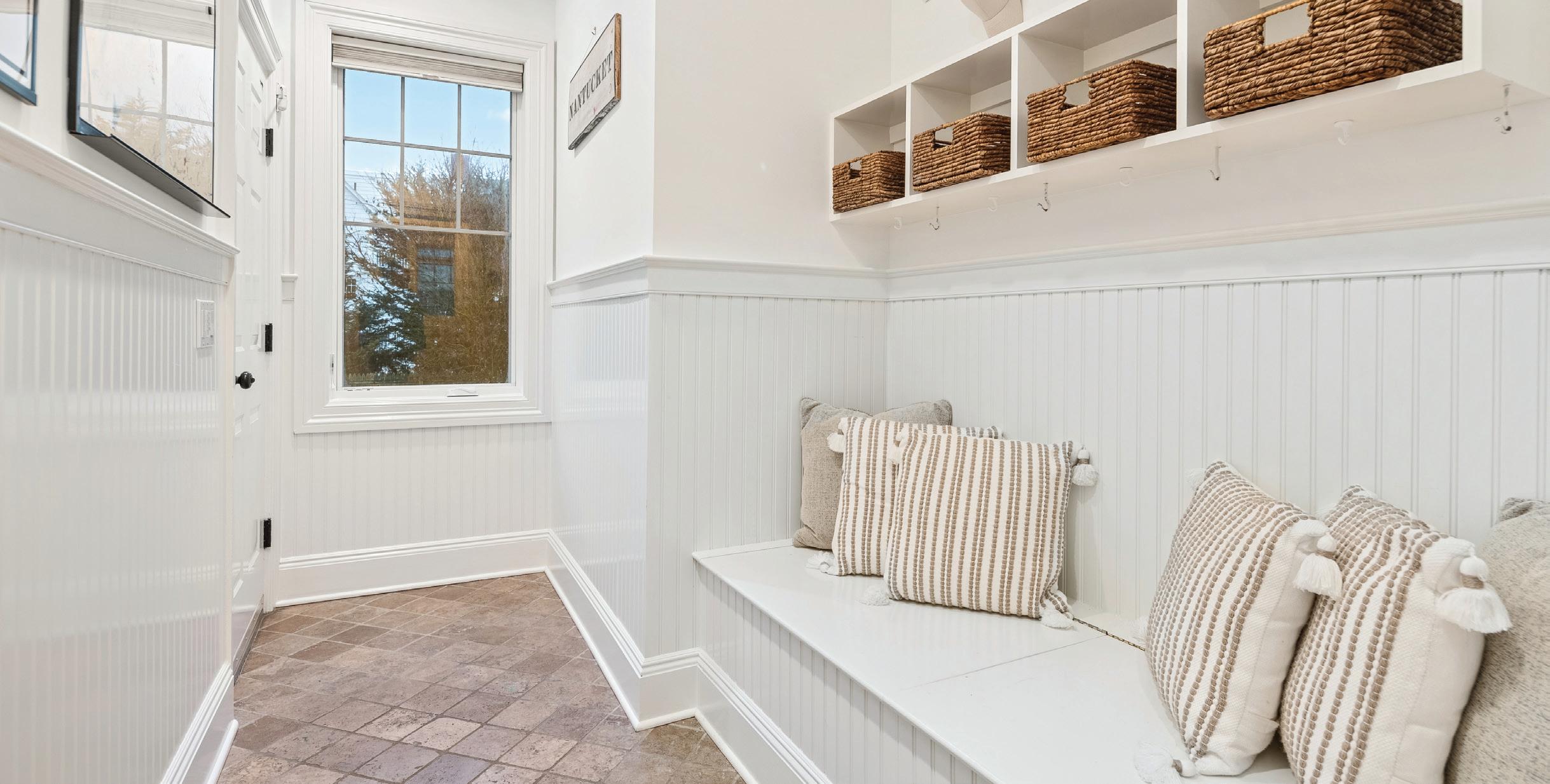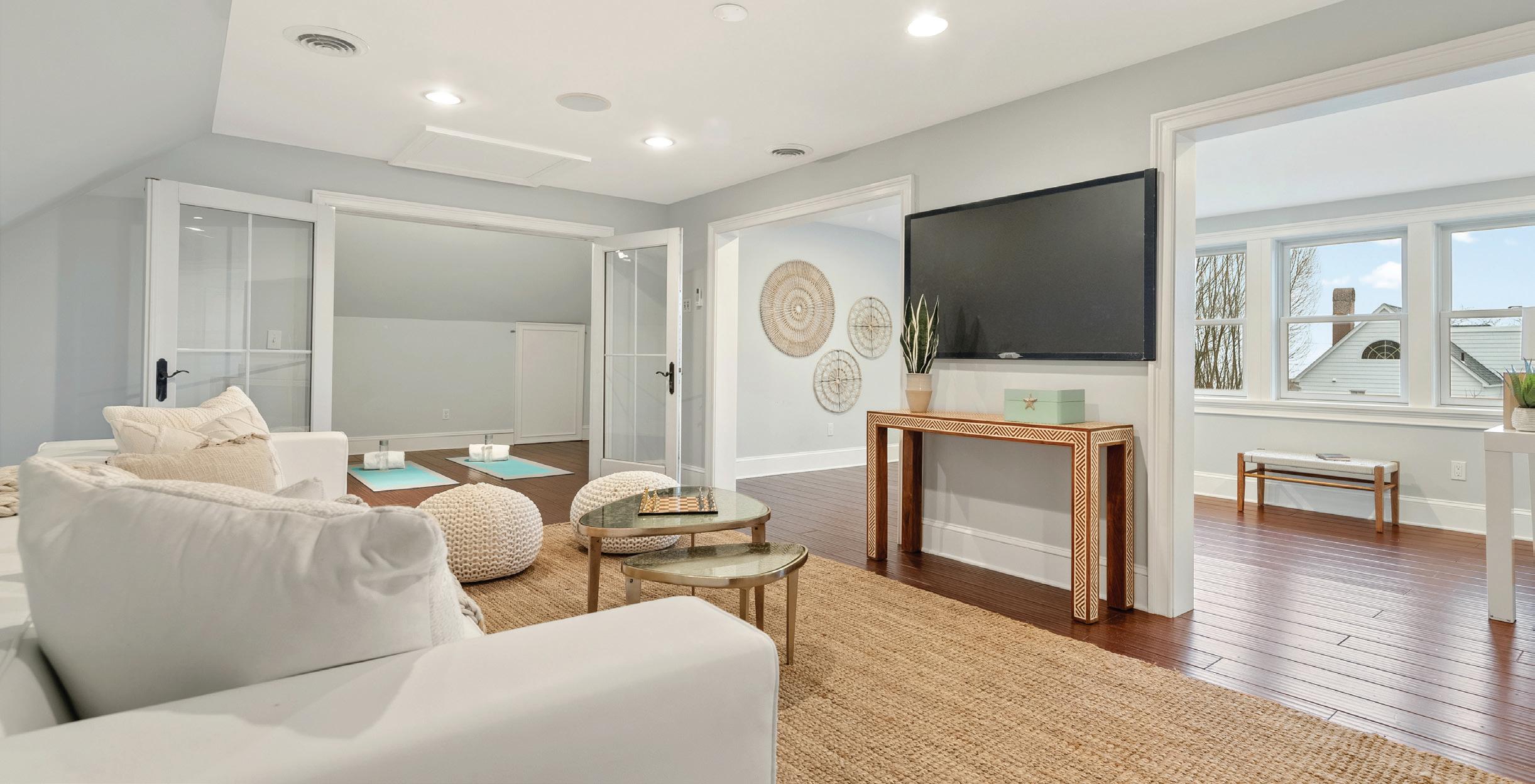 Experience the ultimate in luxury beachside living with this exquisite 4/5BR colonial on soughtafter Carlynn Drive. Nestled on a beautifully landscaped and fully fenced property just moments from Penfield beach, this eco-friendly custom-built home combines timeless elegance with modern sustainability, featuring hurricaneproof construction and geothermal heating and cooling. The bright, open floor plan showcases a formal dining room and living room, leading to a chef’s eat-in kitchen equipped with top-of-the-line appliances, including a Thermador refrigerator, a 6-burner gas range, a Miele wall oven, and a Bosch stainless steel dishwasher. The kitchen opens to a spacious family room featuring a 9-foot co ered ceiling and cozy wood-burning fireplace. French doors provide seamless access to a large deck and garden patio, ideal for dining al fresco. The main level also includes a home o ce, a mudroom, and a newly renovated full bath. Upstairs, the luxurious primary suite o ers serene water views, a gas fireplace, a spa-inspired five-fixture ensuite bath, and a walk-in cedar closet. There are three additional bedrooms, two with ensuite baths and one sharing bath. A versatile media room/ playroom/5th BR completes this floor. The fully finished third floor boasts sweeping water views and flexible living or recreational space. Ample storage, radiant heat bamboo flooring throughout and room for a pool. Immerse yourself in luxury beachside living! 50 mi to NYC.