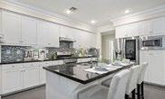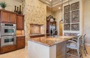 The dining area is adjacent to the living room and breakfast nook, which flow into the state-of-the-art kitchen. This chef’s studio has sharp appeal with high-caliber appliances, generous countertop and storage space, and masterful stone finishes.