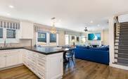 Fully open to the family room, the airy and bright gourmet kitchen was aesthetically designed for functionality with the highest quality finishes, luxe countertops, stainless steel appliances and refined light fixtures. The center island allows for casual seating and effortless food preparation, and the custom cabinetry and spacious pantry provide plenty of storage.