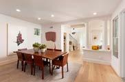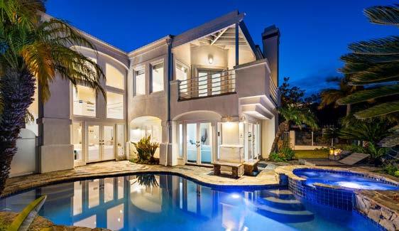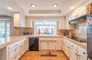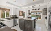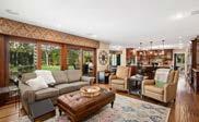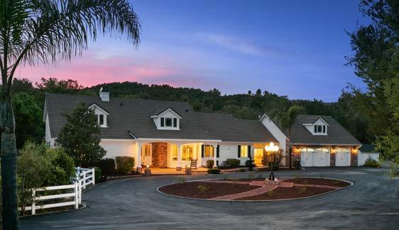 Newly refreshed and turnkey, the home’s open floor plan features abundant natural light, walnut flooring and soaring barreled ceilings. Two seating areas flanked by lavish stone fireplaces set the scene for quiet relaxation or lively gatherings, and the generous dining space comfortably accommodates groups large and small. Vast floorto-ceiling pocket doors and numerous windows frame the panoramic vista and seamlessly merge with the charming, well-appointed décor.
