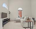 Lovely 1br/1ba unit w/East and West exposures, tiled floors & LG sunlit LR.