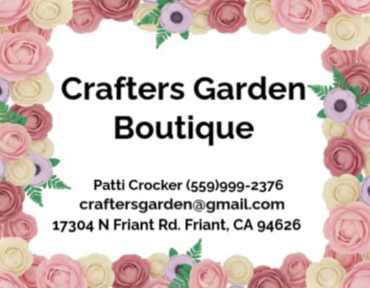 Patti Crocker (559) 999-2376 craftersgarden@gmail.com 17304 N Friant Rd. Friant, CA 94626