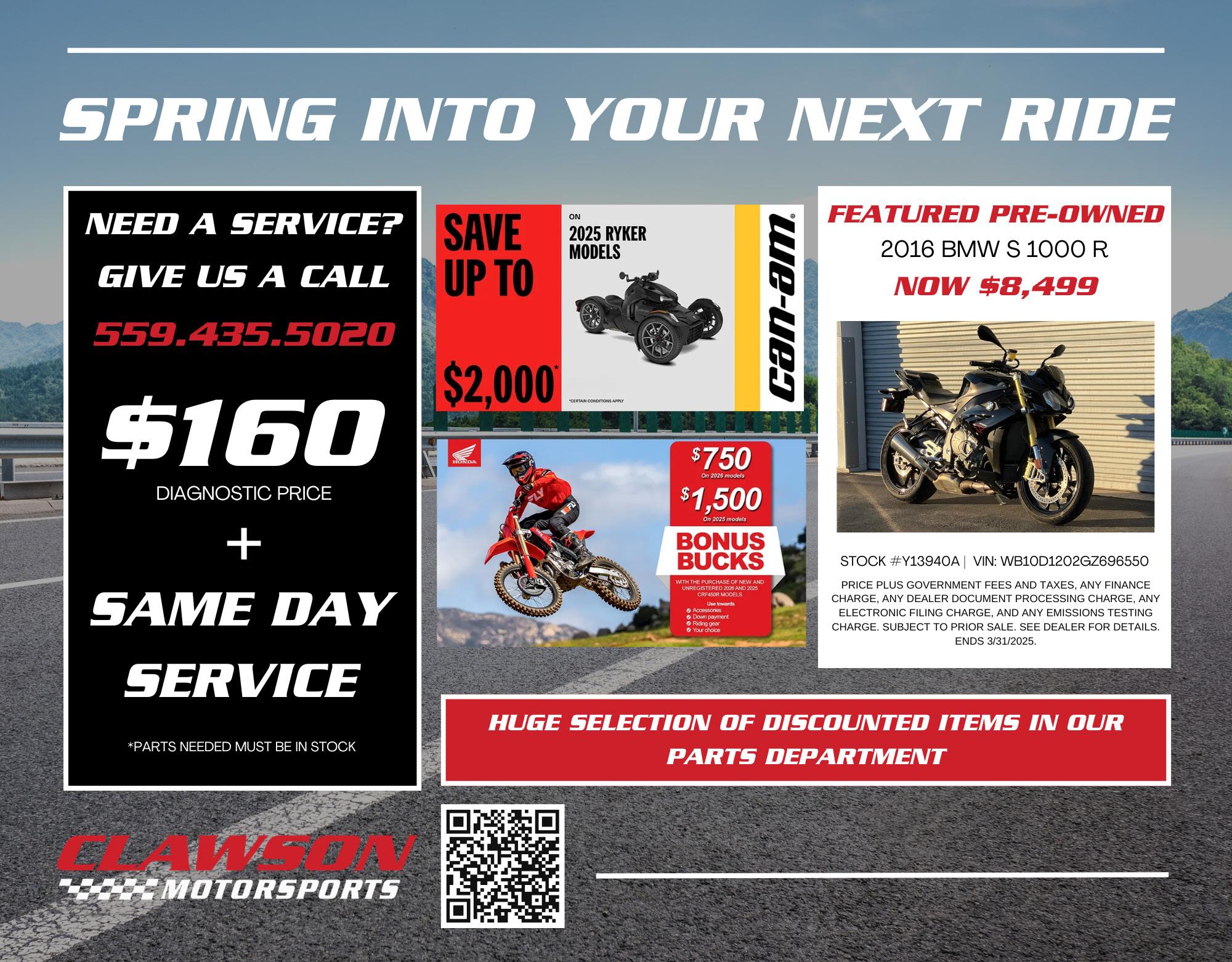 Clawson Motorsports 6334 N. Blackstone Ave 559-435-5020 www.clawsonmotorsports.com
