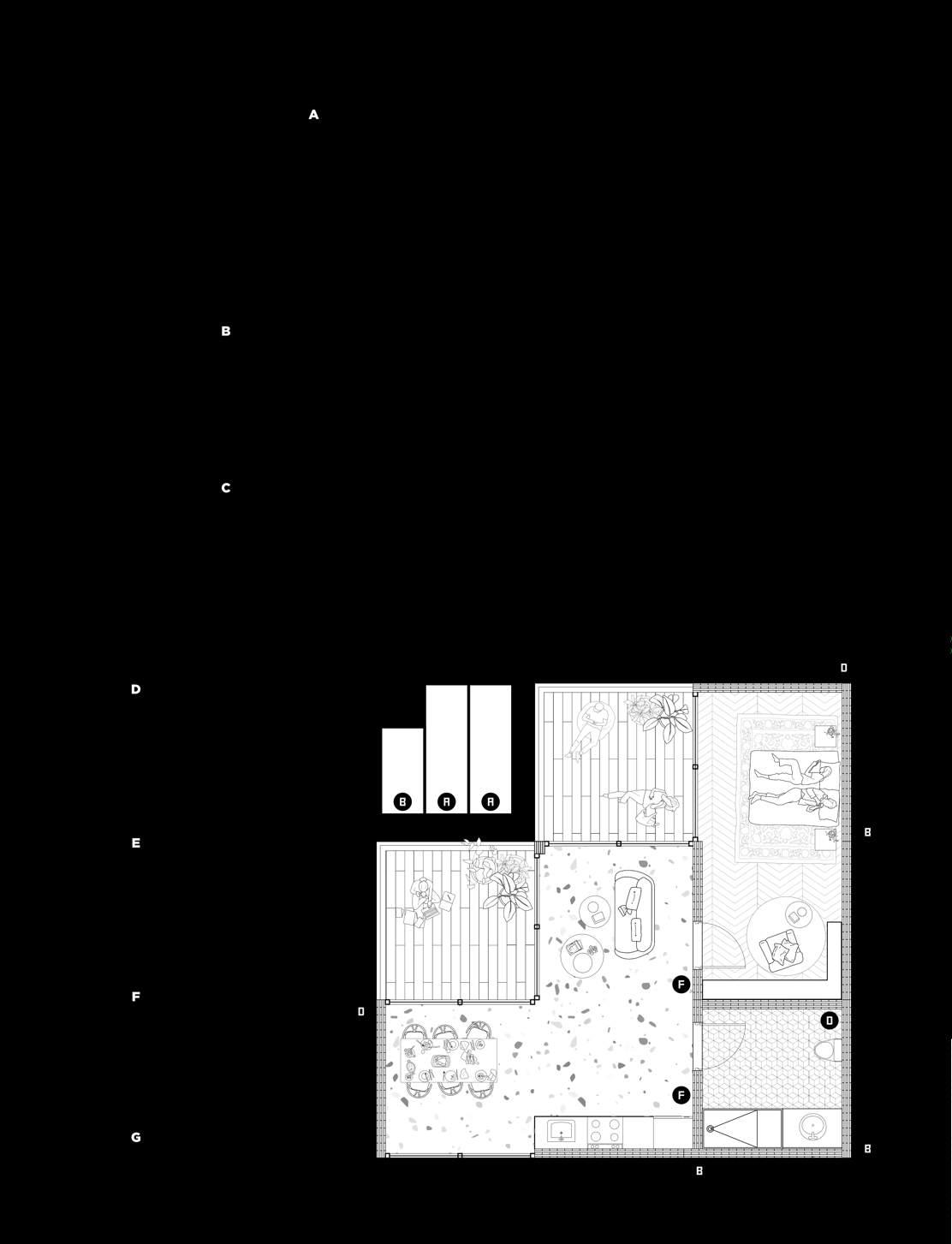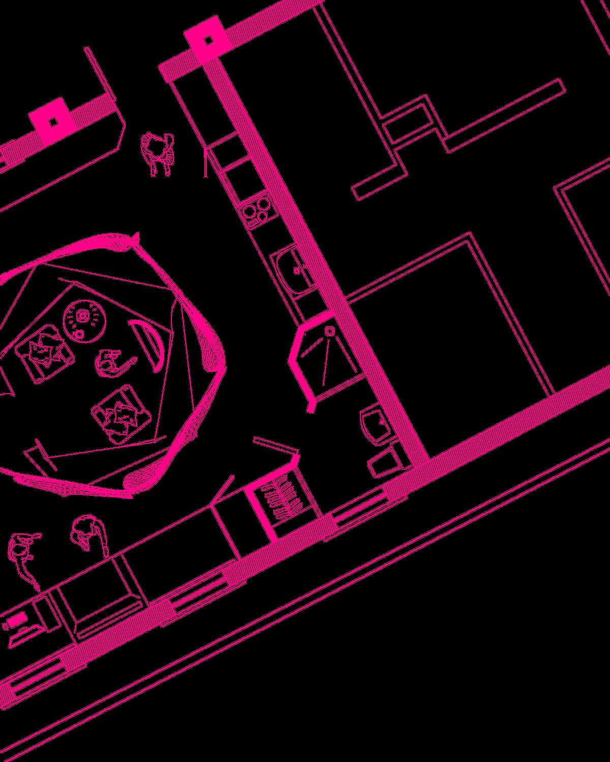 The Rinker studio flat was designed for a visiting researcher fellowship dedicated to investigating the correlation between synthetic biology and architectural materiality. Particularly, they would be experimenting the relationship between that which is made and that which is grown,andhowthelinescanbeblurredso that human can manipulate growth in a molecular scale to create new materials that biologically interact with their environment. The University of Miami is verystronginboththefieldsofarchitecture and biology, so blurring the line between the two disciplines through academic investigation is a natural step. As part of the work involved in such a researcherʼs work might be held in a biologically isolated lab such as those in the CAS section of campus, the work area in the Rinker studio flat would mostly be dedicatedtothesyntheticmanufacturingof such materials through the use of voxel printers and other speciality printers. As such, a focus on the clear distinction between work and live was created, and the space will be designed to provide a meditative relaxing “pod” or floating “cloud” in which the researcher can retire to at the end of the day.